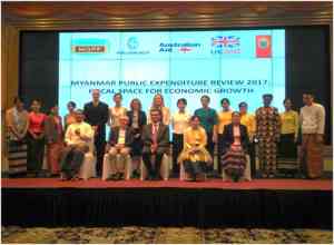 ၂၀၁၇ ခုနှစ်နိုဝင်ဘာလ ၂၁ ရက်နေ့တွင် ကမ္ဘာ့ဘဏ်မှကြီးမှူး၍ အစိုးရအသုံးစရိတ်ပြန်လည် သုံးသပ်မှု ဒုတိယအဆင့်တွင် မြန်မာနိုင်ငံ၏ပြည်သူ့ ဝန်ဆောင်မှုလုပ်ငန်းများနှင့် အခြေခံ အဆောက်အအုံများတိုးတက်ကောင်းမွန်ရေးအတွက် အဓိကလိုအပ်သော ဘဏ္ဍာငွေအသုံးစရိတ်များ ဖြည့်ဆည်းပေးနိုင်ရေး Fiscal space ချဲ့ထွင်မှုအတွက် ရွေးချယ်ဆောင်ရွက်နိုင်သော နည်းလမ်းများကို ဆန်းစစ်ရှာဖွေရေးတို့ပါဝင်သည့် မြန်မာနိုင်ငံ၏ အစိုးရအသုံးစရိတ်ပြန်လည် သုံးသပ်မှုဒုတိယ အဆင့်အစီရင်ခံစာ(၂၀၁၇) မိတ်ဆက်တင်ပြခြင်း အခမ်းအနားတစ်ရပ်အား နေပြည်တော်၊ Hilton Hotelတွင် ကျင်းပပြုလုပ်ခဲ့ပြီးအဆိုပါ အခမ်းအနားသို့ ကမ္ဘာ့ဘဏ်မှ Mr.