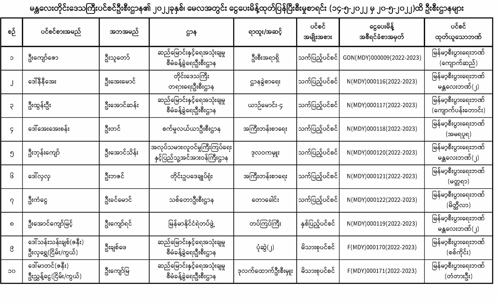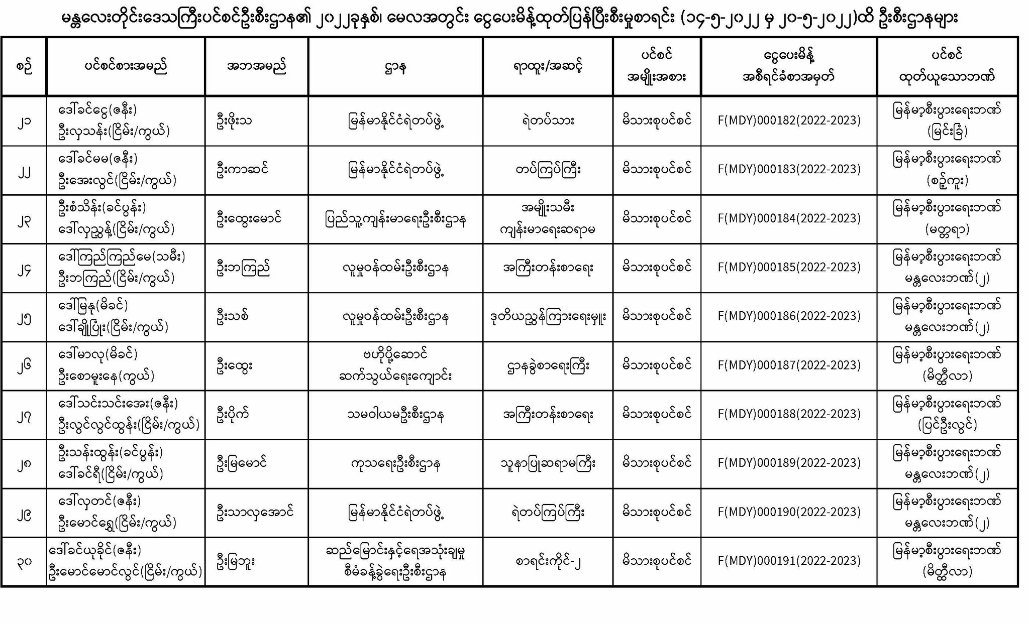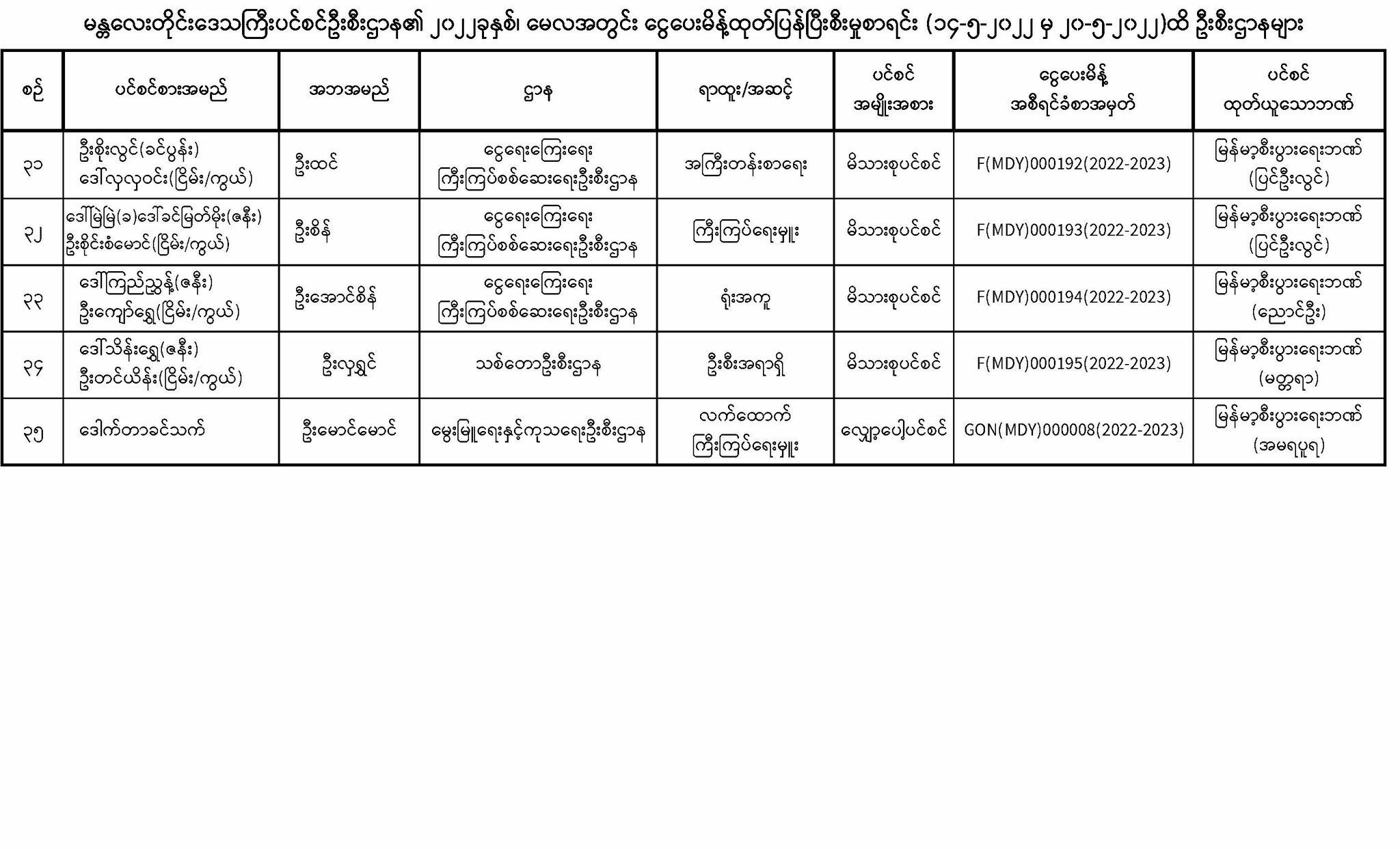 ပင်စင်ဦးစီးဌာန၊ မန္တလေးတိုင်းဒေသကြီးဦးစီးမှူးရုံး၏ ငွေပေးမိန့်ထုတ်ပြန်မှုစာရင်း (၁၆-၄-၂၀၂၂ မှ ၂၂-၄-၂၀၂၂) pension_editor Mon, 05/02/2022 - 11:46