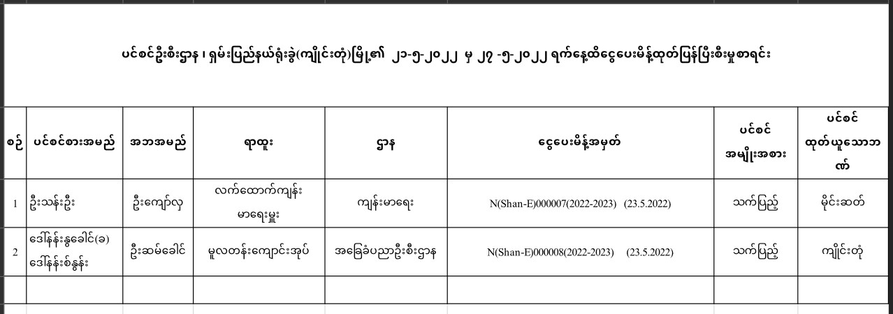 ပင်စင်ဦးစီးဌာန၊ ရှမ်းပြည်နယ် (ကျိုင်းတုံ)၏ ငွေပေးမိန့်ထုတ်ပြန်မှုစာရင်း (၂၁-၅-၂၀၂၂ မှ ၂၇-၅-၂၀၂၂) pension_editor Sat, 06/04/2022 - 09:51