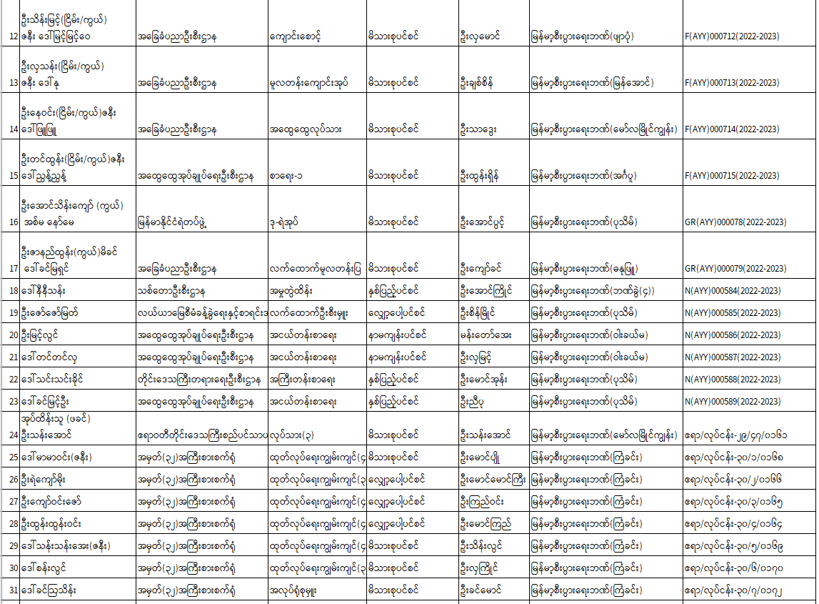 ပင်စင်ဦးစီးဌာန၊ ဧရာဝတီတိုင်းဒေသကြီးဦးစီးမှူးရုံး၏ ငွေပေးမိန့်ထုတ်ပြန်မှုစာရင်း (၂-၇-၂၀၂၂ မှ ၈-၇-၂၀၂၂) pension_editor Fri, 07/08/2022 - 15:49