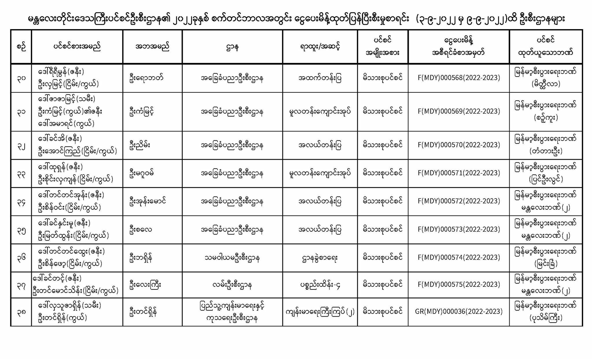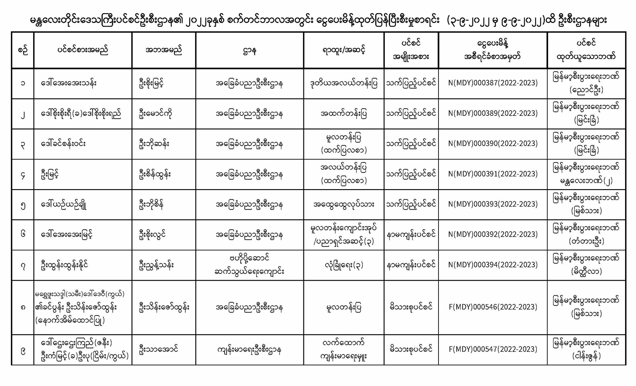 ပင်စင်ဦးစီးဌာန၊ မန္တလေးတိုင်းဒေသကြီး၏ ငွေပေးမိန့်ထုတ်ပြန်မှုစာရင်း (၃-၉-၂၀၂၂ မှ ၉-၉-၂၀၂၂) pension_editor Tue, 09/13/2022 - 10:06