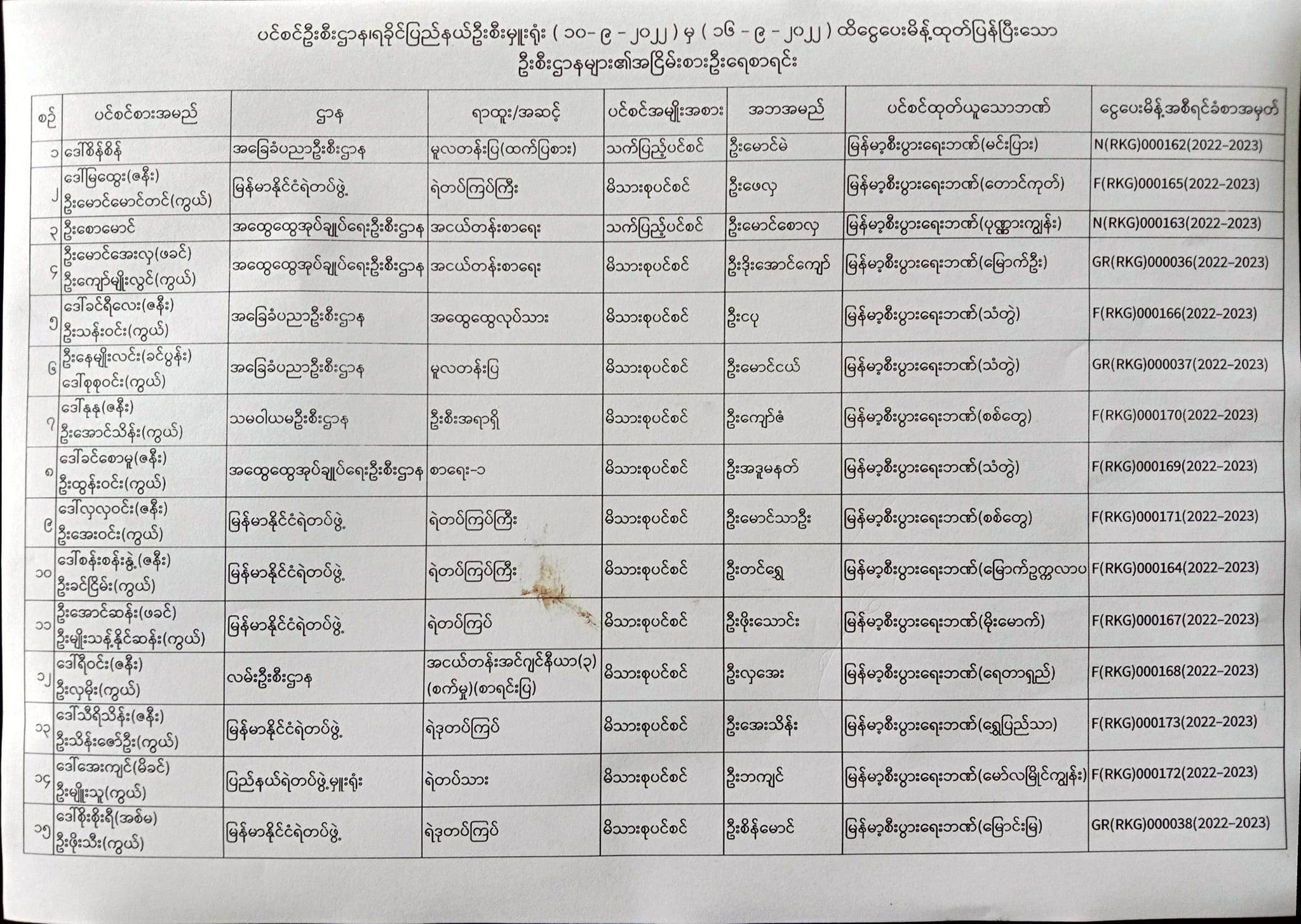 ပင်စင်ဦးစီးဌာန၊ ရခိုင်ပြည်နယ်၏ ငွေပေးမိန့်ထုတ်ပြန်မှုစာရင်း (၁၀-၉-၂၀၂၂ မှ ၁၆-၉-၂၀၂) pension_editor Fri, 09/16/2022 - 15:31
