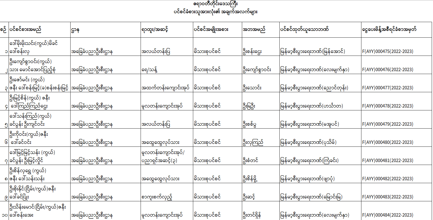 ပင်စင်ဦးစီးဌာန၊ ဧရာဝတီတိုင်းဒေသကြီးဦးစီးမှူးရုံး၏ ငွေပေးမိန့်ထုတ်ပြန်မှုစာရင်း (၁-၁၀-၂၀၂၂ မှ ၇-၁၀-၂၀၂၂)