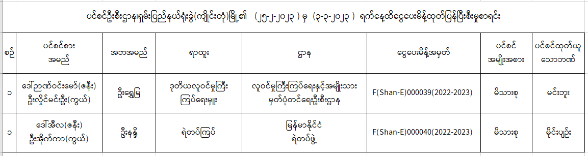 ပင်စင်ဦးစီးဌာန၊ရှမ်းပြည်နယ်(ကျိုင်းတုံမြို့)၏ငွေပေးမိန့်ထုတ်ပြန်မှုစာရင်း(၇-၁-၂၀၂၃ မှ ၁၃-၁-၂၀၂၃) pension_editor Fri, 01/13/2023 - 11:09