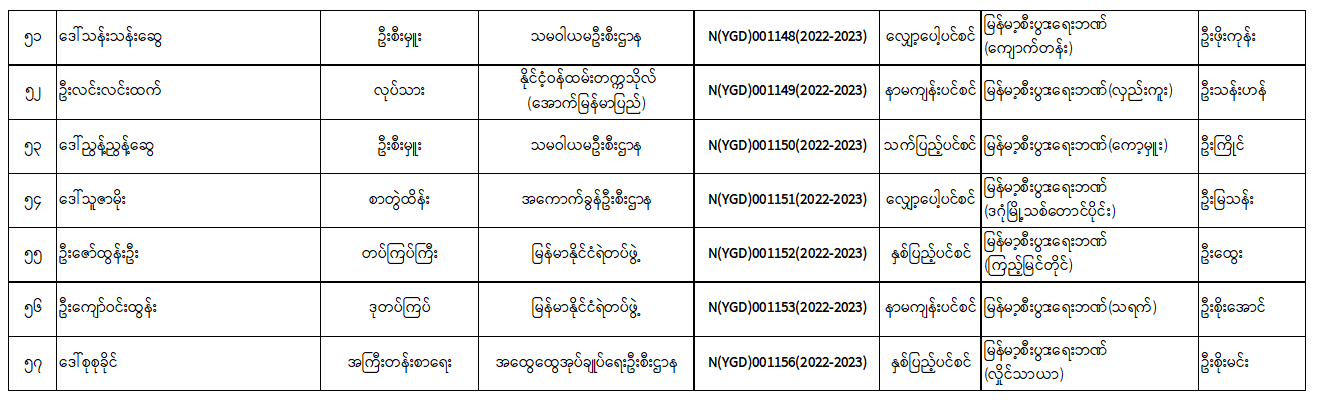 ပင်စင်ဦးစီးဌာန၊ ရန်ကုန်တိုင်းဒေသကြီးဦးစီးမှူးရုံး၏ ငွေပေးမိန့်ထုတ်ပြန်မှုစာရင်း (၁-၁-၂၀၂၃ မှ ၁၇-၁-၂၀၂၃) pension_editor Wed, 01/18/2023 - 12:19