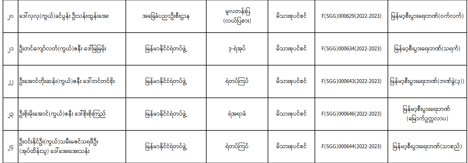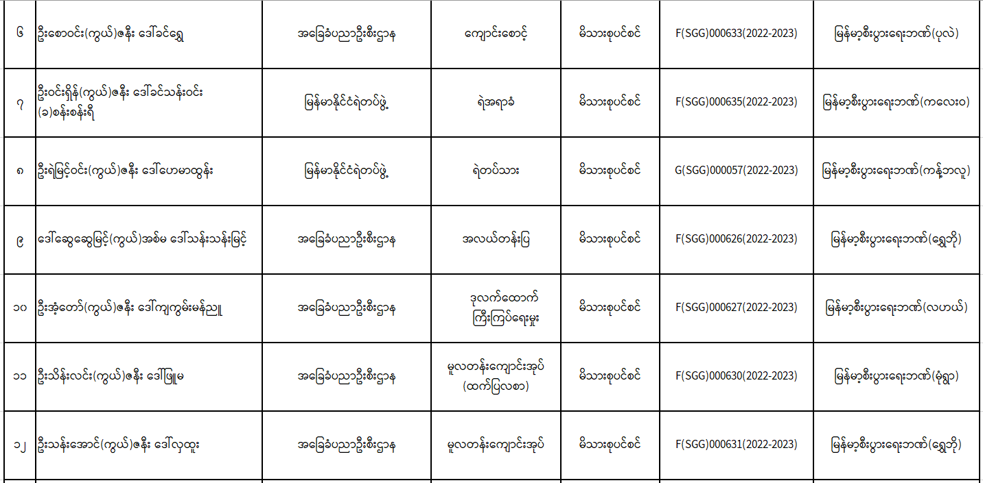 ပင်စင်ဦးစီးဌာန၊ စစ်ကိုင်းတိုင်းဒေသကြီးဦးစီးမှုးရုံး၊ မုံရွာမြို့၏ ငွေပေးမိန့်ထုတ်ပြန်ပြီးစီးမှုစာရင်း ( ၃၁ - ၁၂ - ၂၀၂၃ မှ ၁၃ - ၁ - ၂၀၂၃ အထိ ) pension_editor Thu, 02/02/2023 - 15:23