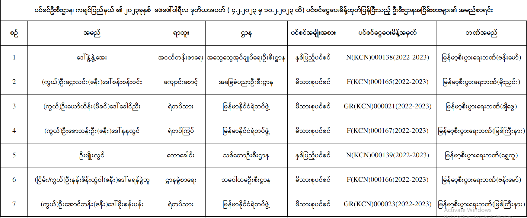 ပင်စင်ဦးစီးဌာန၊ကချင်ပြည်နယ်၏ငွေပေးမိန့်ထုတ်ပြန်မှုစာရင်း(၄-၂-၂၀၂၃ မှ ၁၀-၂-၂၀၂၃) pension_editor Wed, 02/15/2023 - 11:16