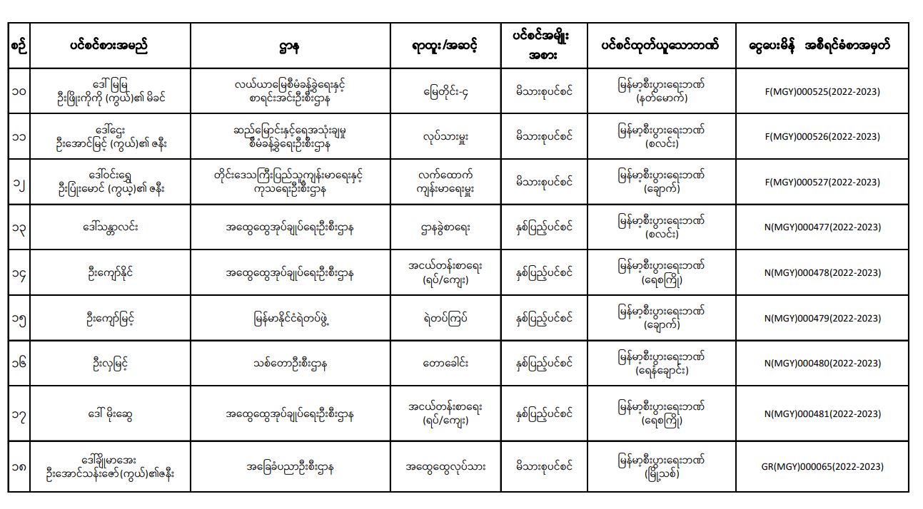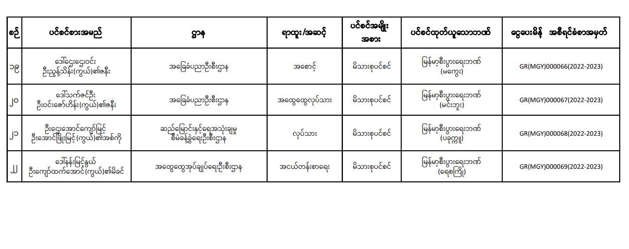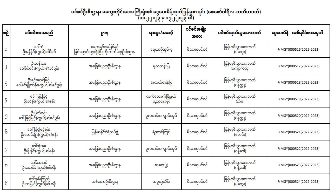 ပင်စင်ဦးစီးဌာန၊ မကွေးတိုင်းဒေသကြီးဦးစီးမှူးရုံး၏ ငွေပေးမိန့်ထုတ်ပြန်မှုစာရင်း (၁၀-၂-၂၀၂၃ မှ ၁၇-၂-၂၀၂၃) pension_editor Fri, 02/17/2023 - 13:04