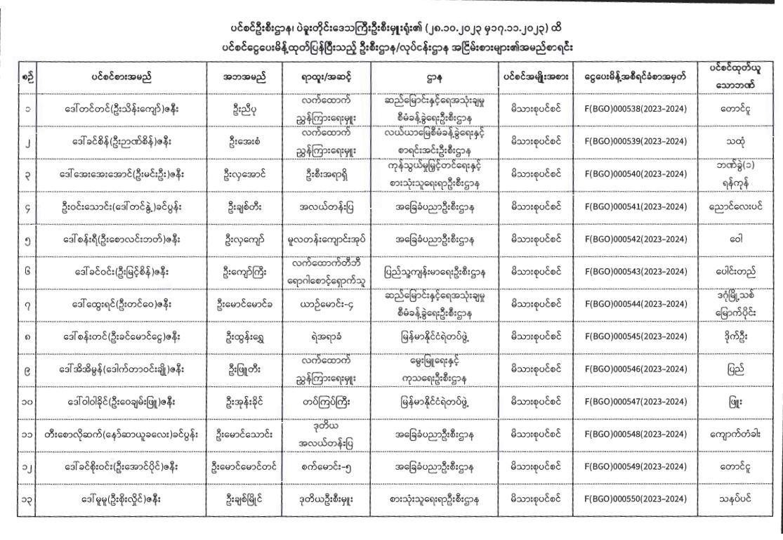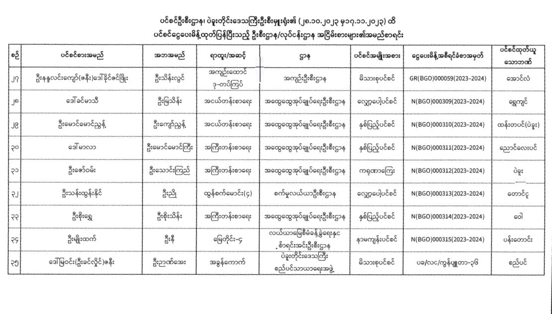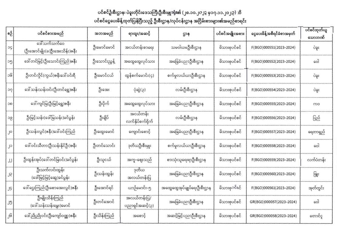 ပင်စင်ဦးစီးဌာန၊ ပဲခူးတိုင်းဒေသကြီးဦးစီးမှူးရုံး၏ ငွေပေးမိန့်ထုတ်ပြန်မှုစာရင်း (၂၈-၁၀-၂၀၂၃ မှ ၁၇-၁၁-၂၀၂၃) pension_editor Mon, 11/20/2023 - 12:16