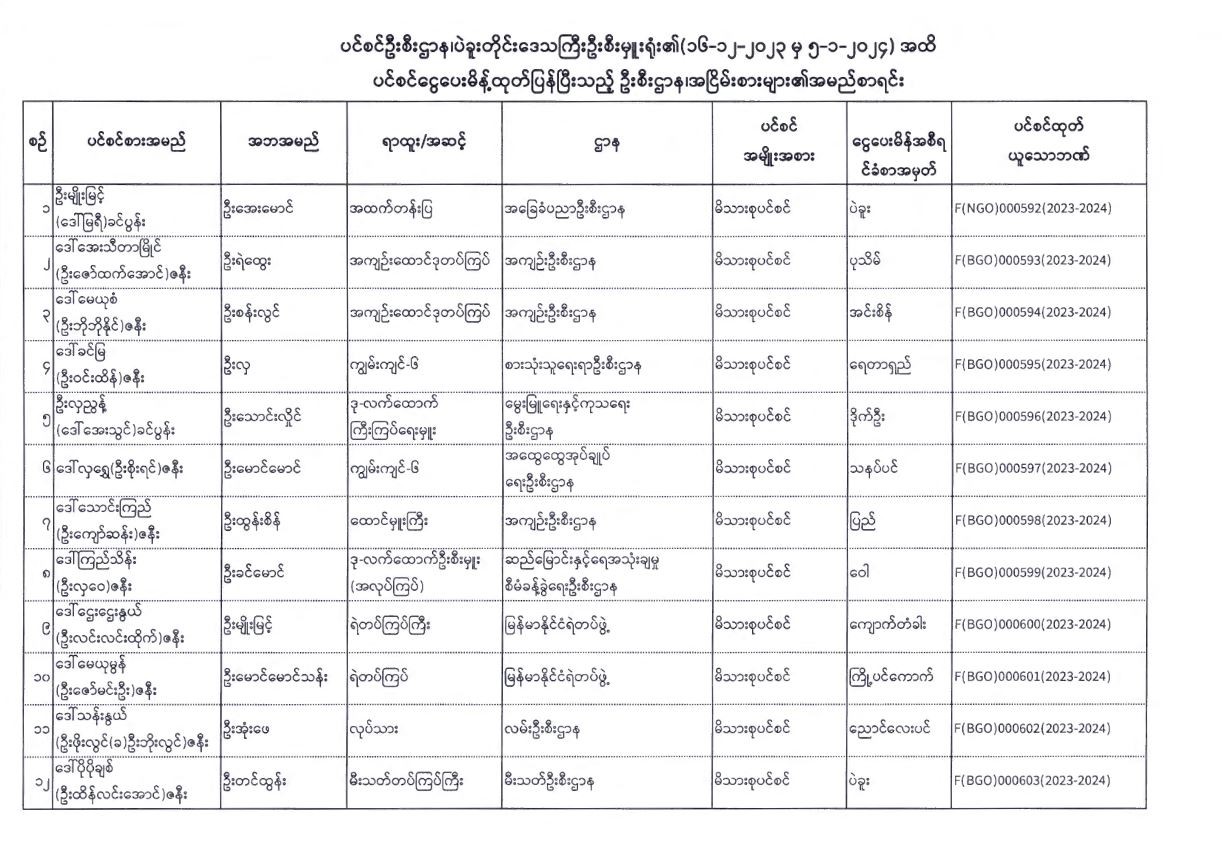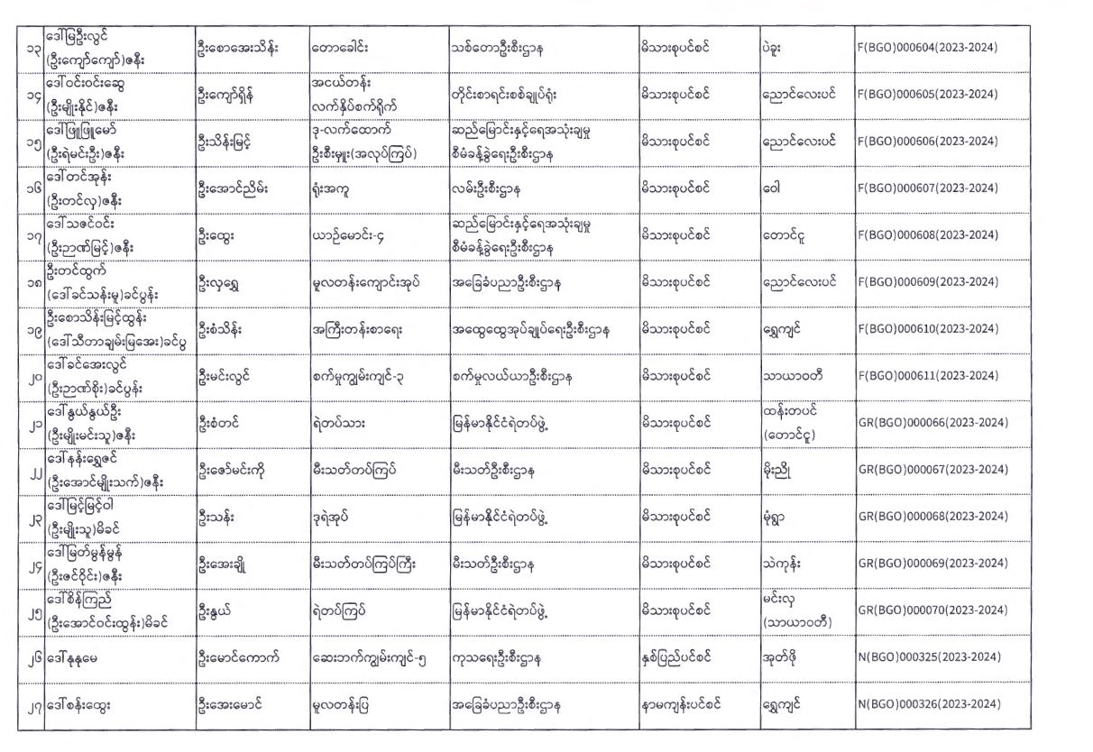 ပင်စင်ဦးစီးဌာန၊ ပဲခူးတိုင်းဒေသကြီးဦးစီးမှူးရုံး၏ ငွေပေးမိန့်ထုတ်ပြန်မှုစာရင်း (၁၆-၁၂-၂၀၂၃ မှ ၅-၁-၂၀၂၄)