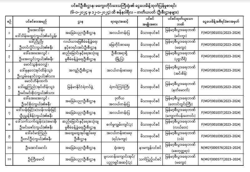 ပင်စင်ဦးစီးဌာန၊ မကွေးတိုင်းဒေသကြီးဦးစီးမှူးရုံး၏ ငွေပေးမိန့်ထုတ်ပြန်မှုစာရင်း (၆-၁-၂၀၂၄ မှ ၁၂-၁-၂၀၂၄)