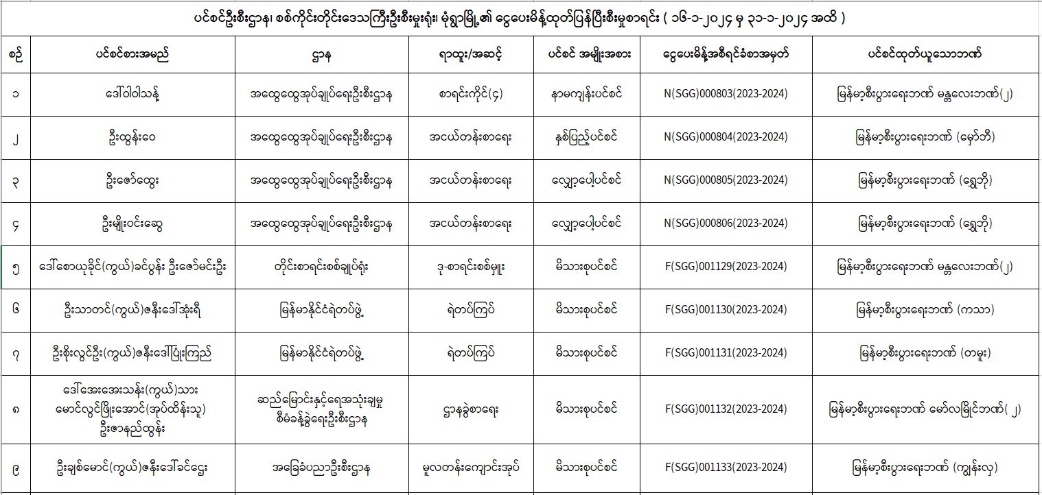 ပင်စင်ဦးစီးဌာန၊ စစ်ကိုင်းတိုင်းဒေသကြီးဦးစီးမှူးရုံး၏ ငွေပေးမိန့်ထုတ်ပြန်မှုစာရင်း (၁၆-၁-၂၀၂၄ မှ ၃၁-၁-၂၀၂၄) pension_editor Fri, 02/02/2024 - 14:48