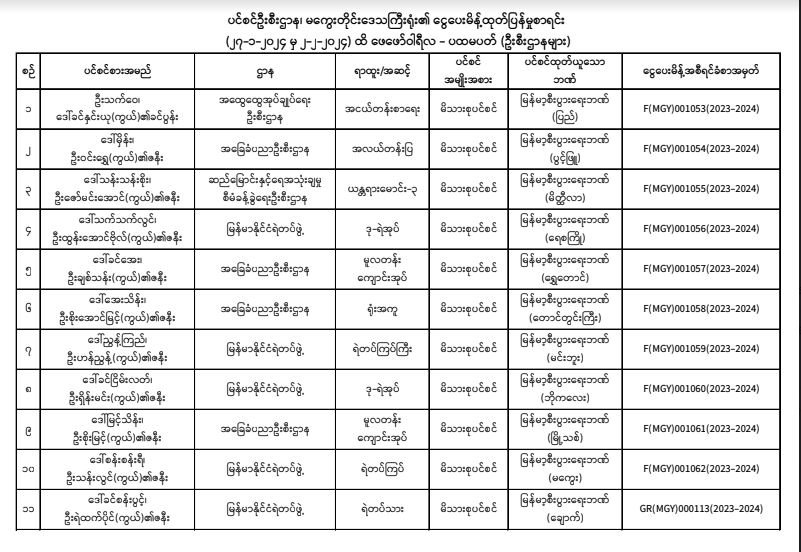 ပင်စင်ဦးစီးဌာန၊ မကွေးတိုင်းဒေသကြီးဦးစီးမှူးရုံး၏ ငွေပေးမိန့်ထုတ်ပြန်မှုစာရင်း (၂၇-၁-၂၀၂၄ မှ ၂-၂-၂၀၂၄) pension_editor Fri, 02/02/2024 - 14:55