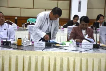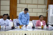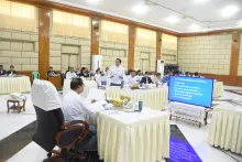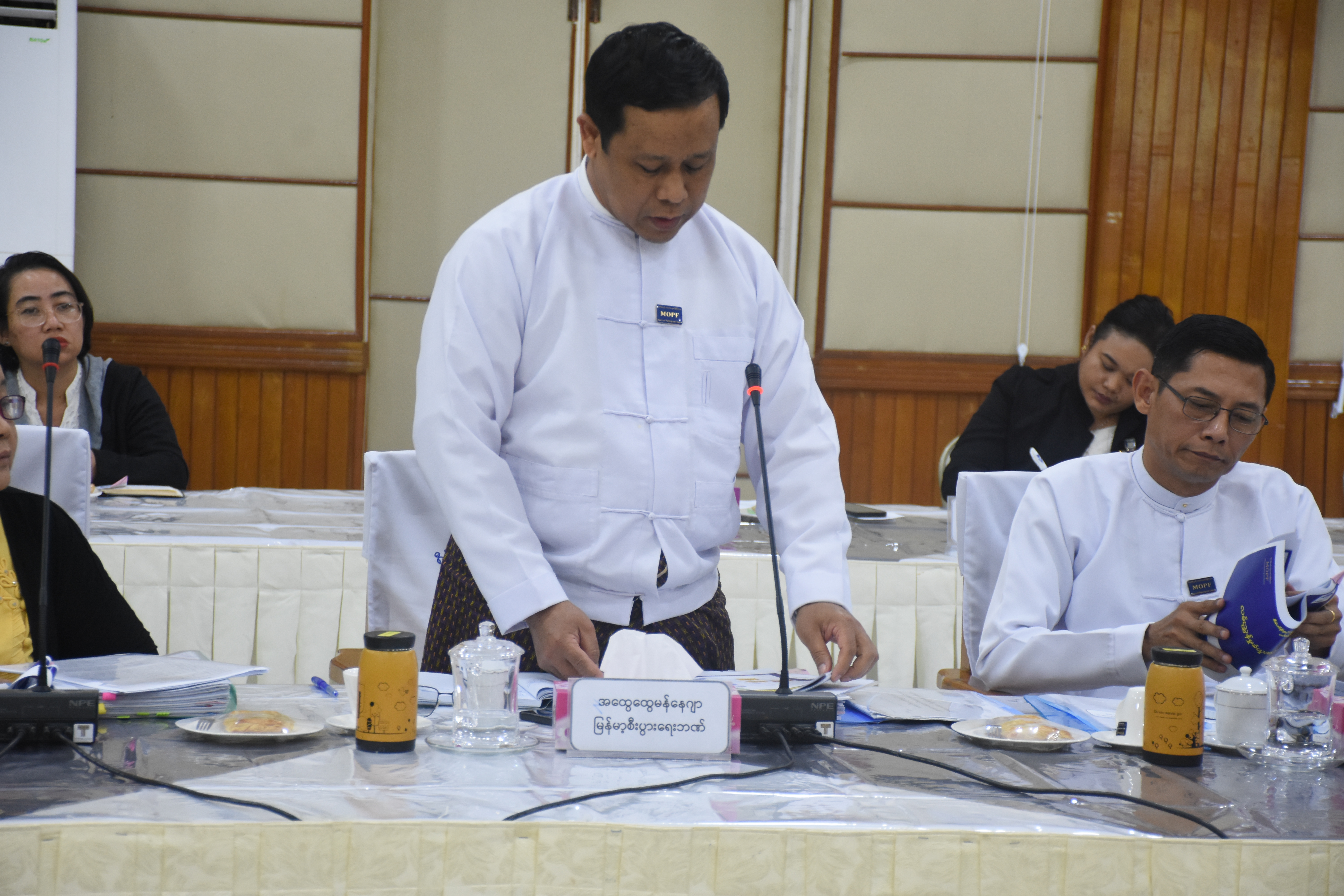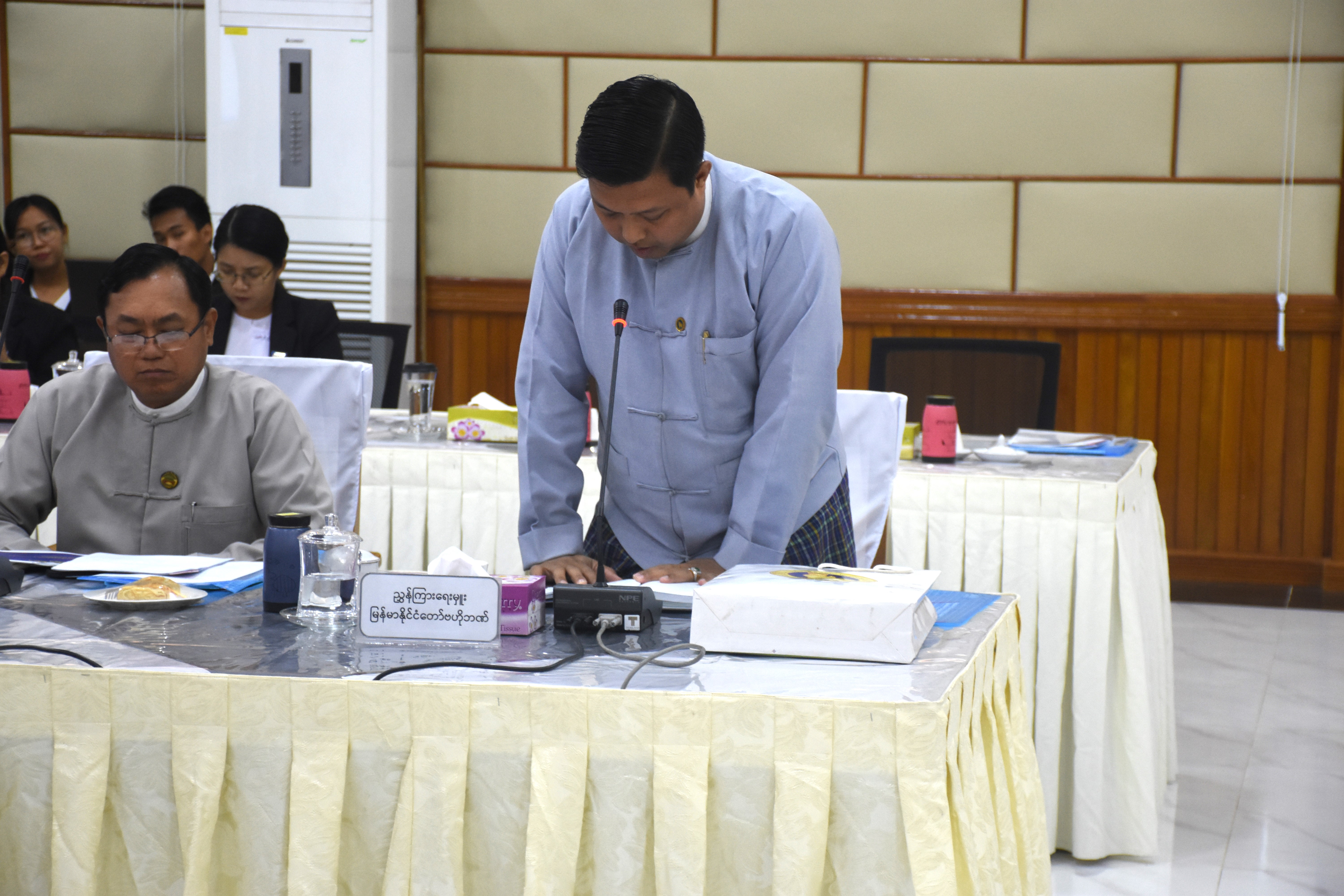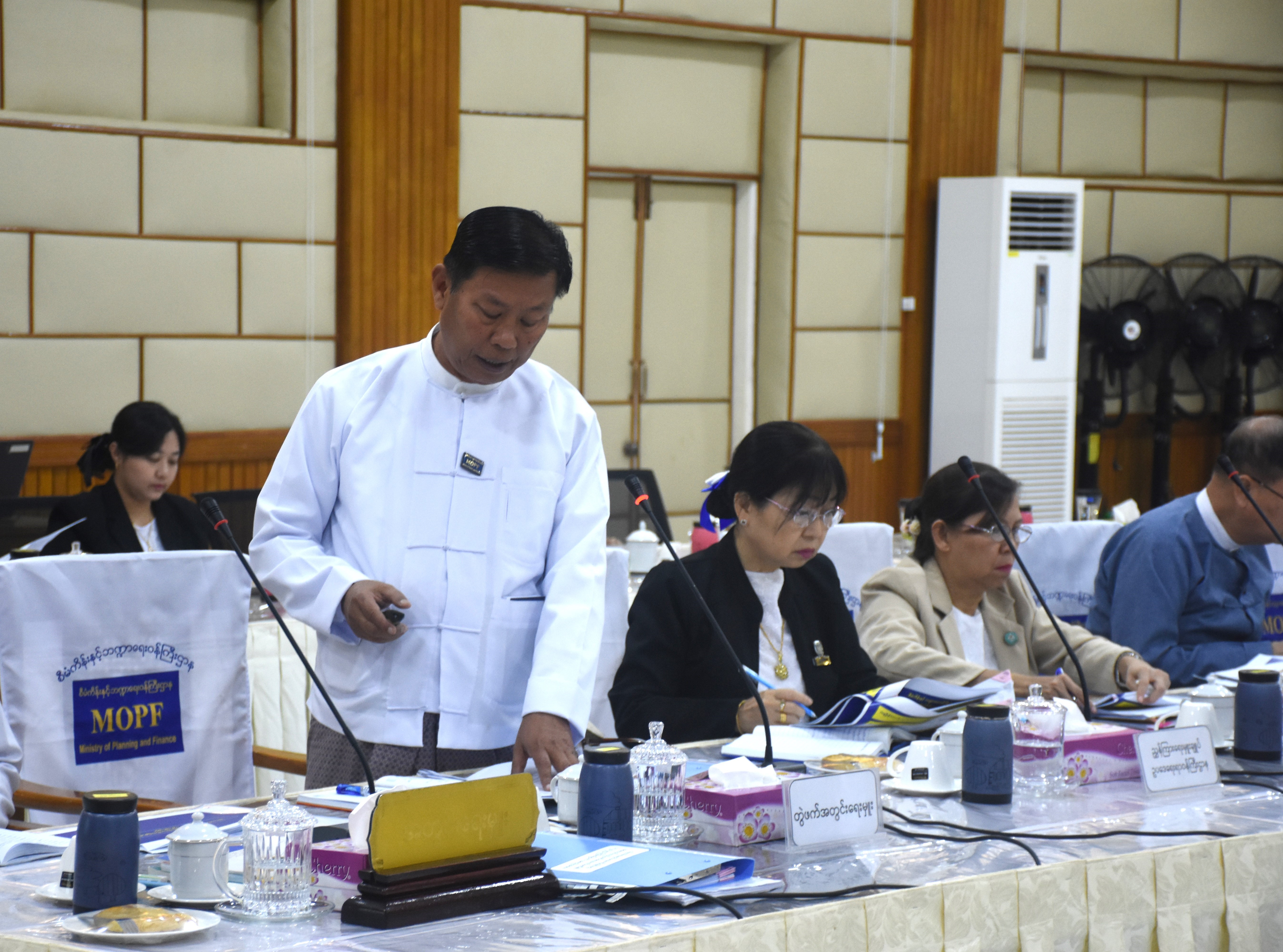 “ဝန်ထမ်းနောင်ရေးဗဟိုရန်ပုံငွေ အကောင်အထည်ဖော်ရေးကော်မတီ”၏ (၁/၂၀၂၅) ကြိမ်မြောက် အစည်းအဝေးအား စီမံကိန်းနှင့်ဘဏ္ဍာရေးဝန်ကြီးဌာန၊ ရုံးအမှတ်(၃၄)၊ အစည်းအဝေးခန်းမတွင် နေ့လယ်(၂:၀၀)နာရီ၌ ကျင်းပပြုလုပ်ခဲ့ရာ ဝန်ထမ်းနောင်ရေး ဗဟိုရန်ပုံငွေအကောင် အထည်ဖော်ရေးကော်မတီဥက္ကဋ္ဌ၊ စီမံကိန်းနှင့်ဘဏ္ဍာရေးဝန်ကြီးဌာန၊ ဒုတိယဝန်ကြီး ဦးမင်းထွဋ်နှင့် ကော်မတီဝင်များ ဖြစ်ကြသည့် သက်ဆိုင်ရာဌာနများမှ ဦးဆောင်ညွှန်ကြားရေးမှူးများနှင့် ညွှန်ကြားရေးမှူးချုပ်များ စုံညီစွာ တက်ရောက်ကြသည်။