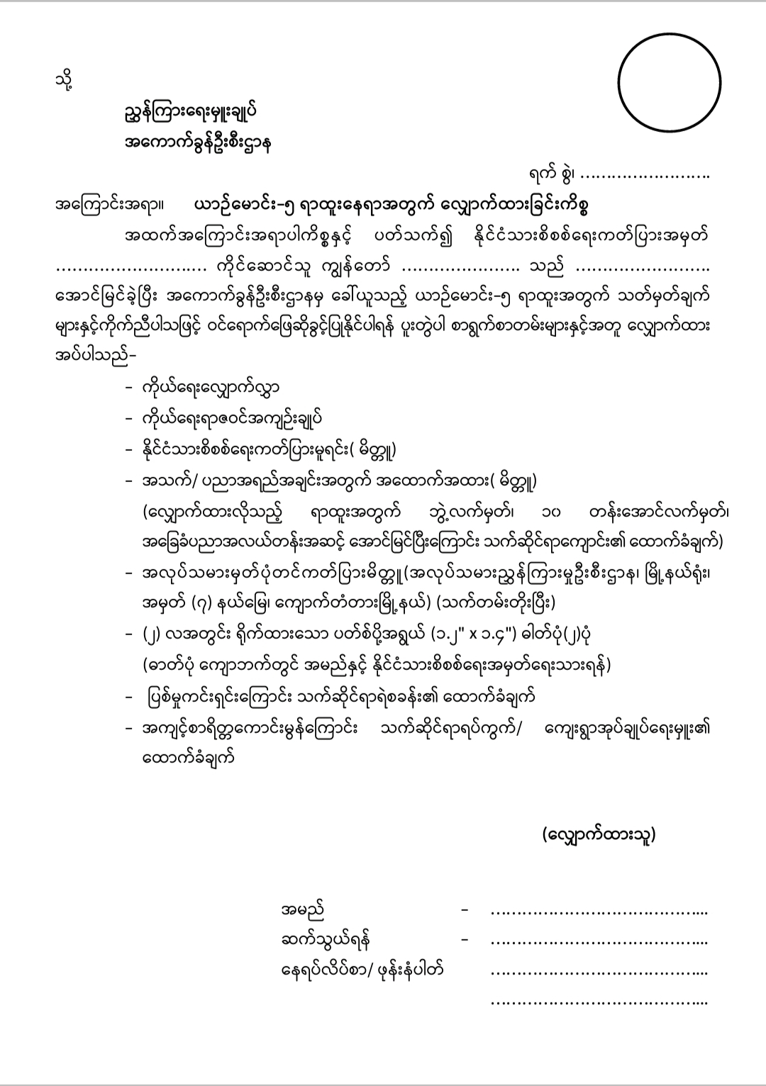 ယာဥ်မောင်း-၅ရာထူး အလုပ်လျှောက်လွှာပုံစံ