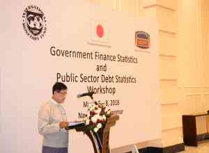 မြန်မာနိုင်ငံတွင် အစိုးရဘဏ္ဍာရေးစာရင်းအင်းများ စုစည်းပေါင်းချုပ်ခြင်းနှင့် အစီရင်ခံခြင်း တို့အား နိုင်ငံတကာစံသတ်မှတ်ချက်များနှင့်အညီ ဆောင်ရွက်လျက်ရှိရာ ဝန်ထမ်းများ၏ စွမ်းဆောင်ရည်မြှင့်တင်နိုင်ရန်ရည်ရွယ်၍ စီမံကိန်းနှင့်ဘဏ္ဍာရေးဝန်ကြီးဌာနနှင့် အပြည်ပြည်ဆိုင်ရာ ငွေကြေးရန်ပုံငွေအဖွဲ့ (IMF) တို့ပူးပေါင်း၍Government Finance Statistics and Public Sector Debt Statistics Workshop အား၂၀၁၈ ခုနှစ်မတ်လ ၅ ရက်နေ့မှ၈ရက်နေ့အထိ နေပြည်တော် Hilton Hotel တွင်ကျင်းပပြုလုပ်ခဲ့ပြီး အဆိုပါအလုပ်ရုံဖွင့်ပွဲအခမ်းအနားတွင် စီမံကိန်းနှင့် ဘဏ္ဍာရေးဝန်ကြီးဌာန ဒုတိယဝန်ကြီးဦးမောင်မောင်ဝင်းမှ အဖွင့်အမှာစကားပြောကြားခဲ့ပါသည်။