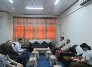 ၄-၈-၂၀၁၇ ရက်နေ့ မွန်းလွဲ ၂:၀၀ နာရီတွင် မြန်မာ့အာမခံလုပ်ငန်းရုံးချုပ်၌ မြန်မာ့အာမခံ လုပ်ငန်း ဦးဆောင်ညွှန်ကြားရေးမှူး ဒေါက်တာစန္ဒာဦးနှင့်အဖွဲ့အား ဗြိတိသျှသံရုံးမှ တာဝန်ရှိသူများ လာရောက်၍ Capital Markets Development နှင့် Innovative Finance အကြောင်း လာရောက်တွေ့ဆုံဆွေးနွေးခဲ့ပါသည်။