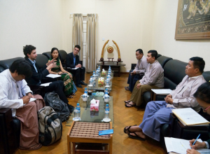 နေပြည်တော်၊ ရုံးအမှတ် ၄၆၊ ပြည်တွင်းအခွန်များဦးစီးဌာန၊ အစည်းအဝေးခန်းမတွင် ၄-၁၂-၂၀၁၈ ရက်နေ့ နေ့လည် ၁၃:၀၀ နာရီ၌ ပြည်တွင်းအခွန်များဦးစီးဌာနမှ ညွှန်ကြားရေးမှူးချုပ် ဦးမင်းထွဋ် ဦးဆောင်သော အထူးကုန်စည်အဖွဲ့နှင့် ITIC အဖွဲ့မှ Mr. Hafiz Choudhury နှင့် Mr. Summit DutMajumber တို့တွေ့ဆုံ၍ အထူးကုန်စည်ဆိုင်ရာကိစ္စရပ်များ ဆွေးနွေးခဲ့ကြကြောင်း သိရှိရပါသည်။