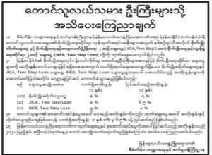 မြန်မာ့လယ်ယာဖွံ့ဖြိုးရေးဘဏ် အိတ်ဖွင့်တင်ဒါတင်သွင်းလွှာဖိတ်ခေါ်ခြင်း