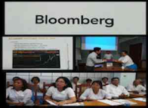 မြန်မာ့ရင်းနှီးမြှုပ်နှံမှုနှင့် ကူးသန်းရောင်းဝယ်ရေး ဘဏ်တွင် ငွေကြေးစျေးကွက် လုပ်ငန်းများအား နိုင်ငံတကာအဆင့်မှီ ဘလွန်းဘတ်တာမီနယ်ဖြင့် အသုံးပြု ဆောင်ရွက်နိုင်ရန် သင်တန်းပို့ချနေပုံ