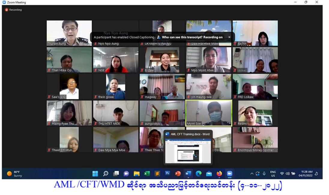 AML/CFT/ WMD ဆိုင်ရာ အသိပညာမြှင့်တင်ရေးသင်တန်းကျင်းပပြီးစီးခြင်း