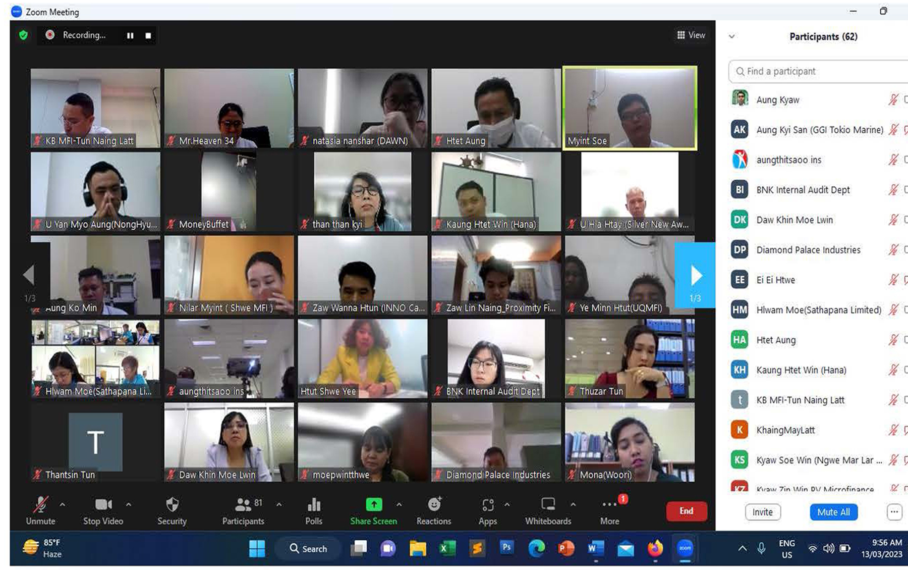 ၂၀၂၃ ခုနှစ်၊ မတ်လ ၆ ရက်နေ့မှ ၁၀ ရက်နေ့အထိ AML/CFT/WMD ဆိုင်ရာ  အသိပညာ မြှင့်တင်ရေးသင်တန်းအား