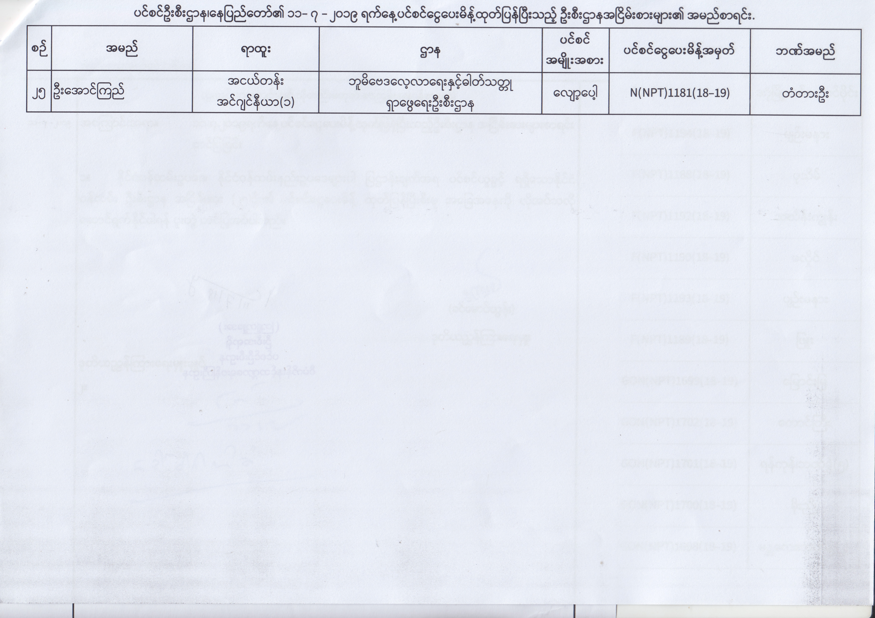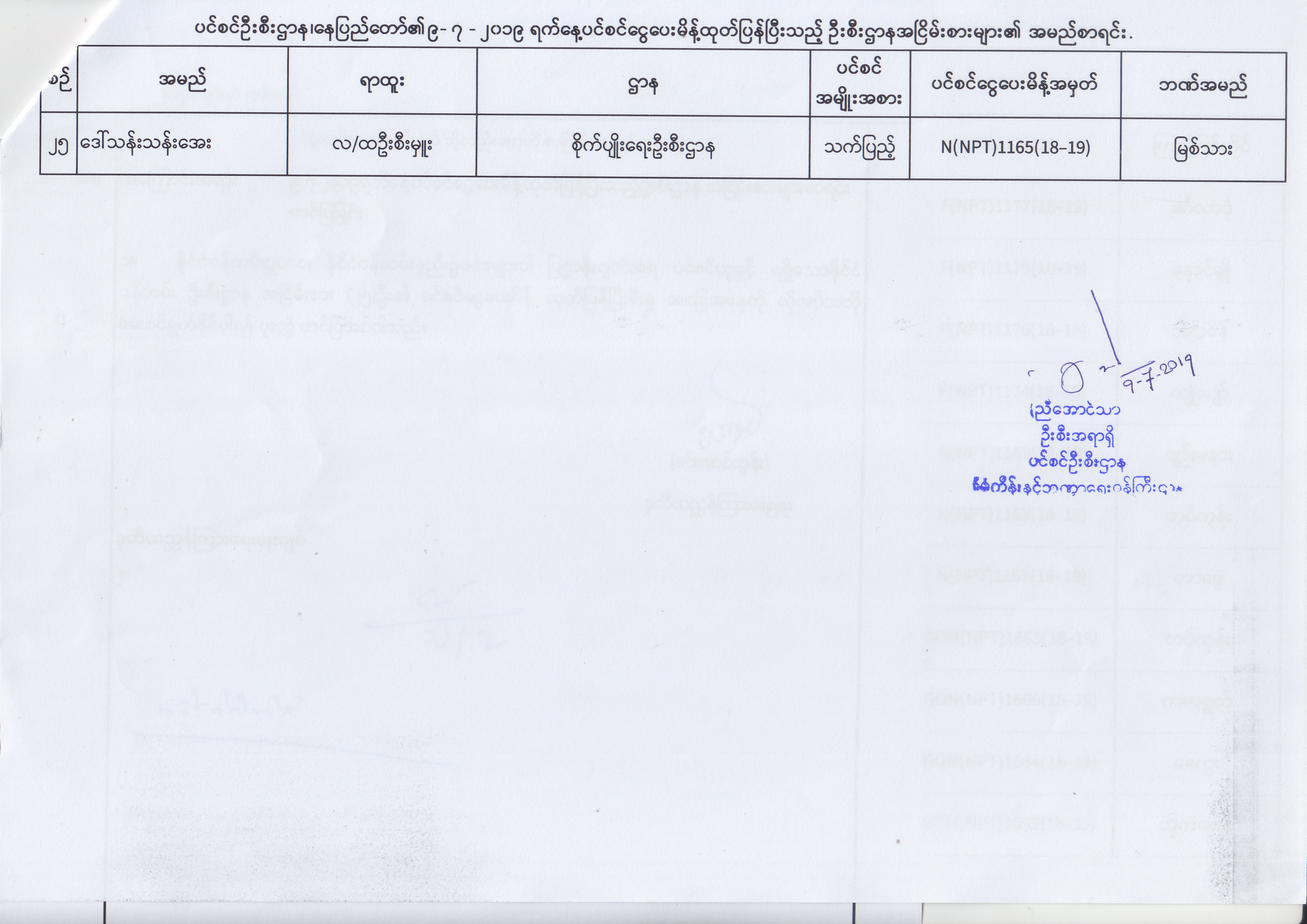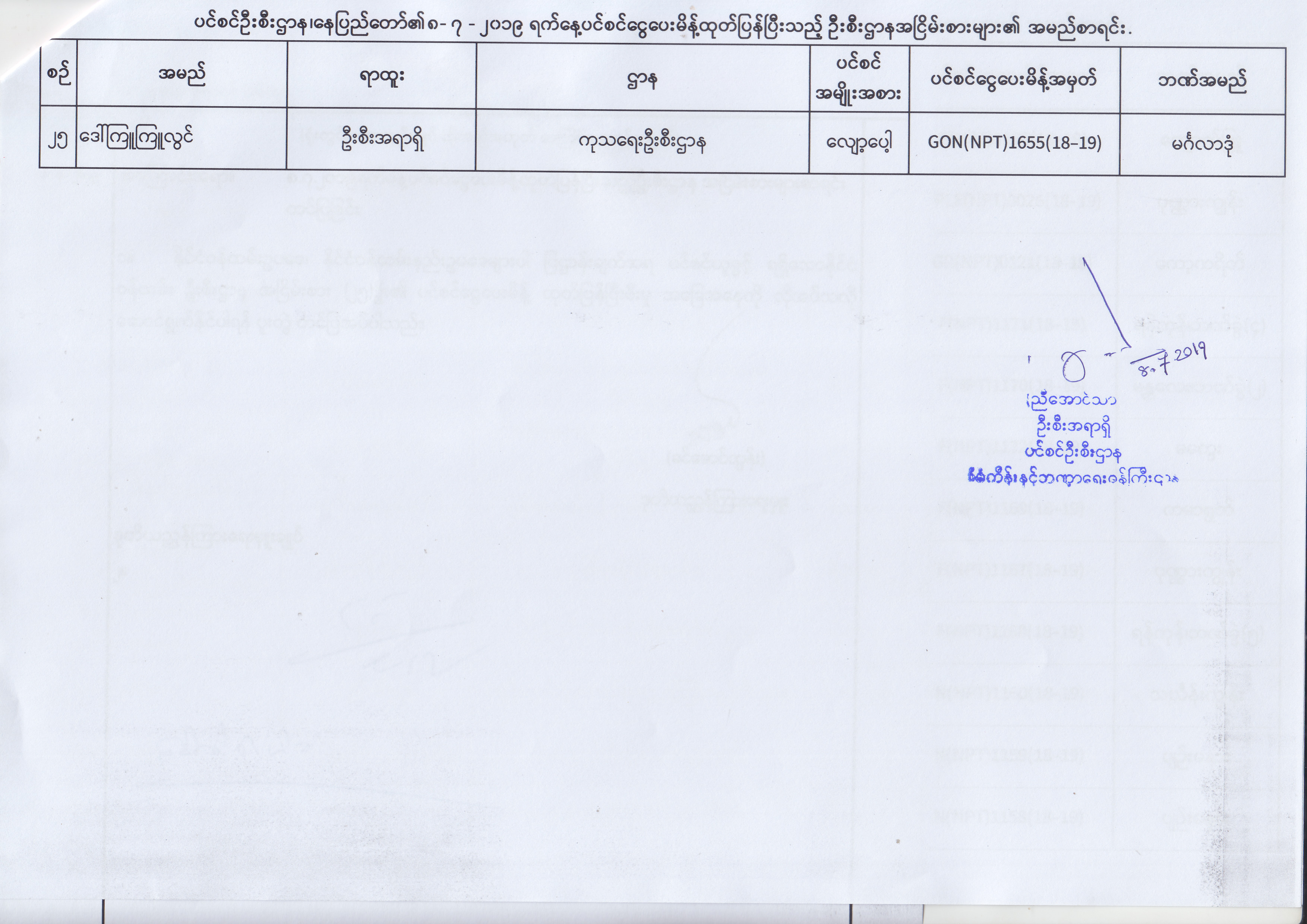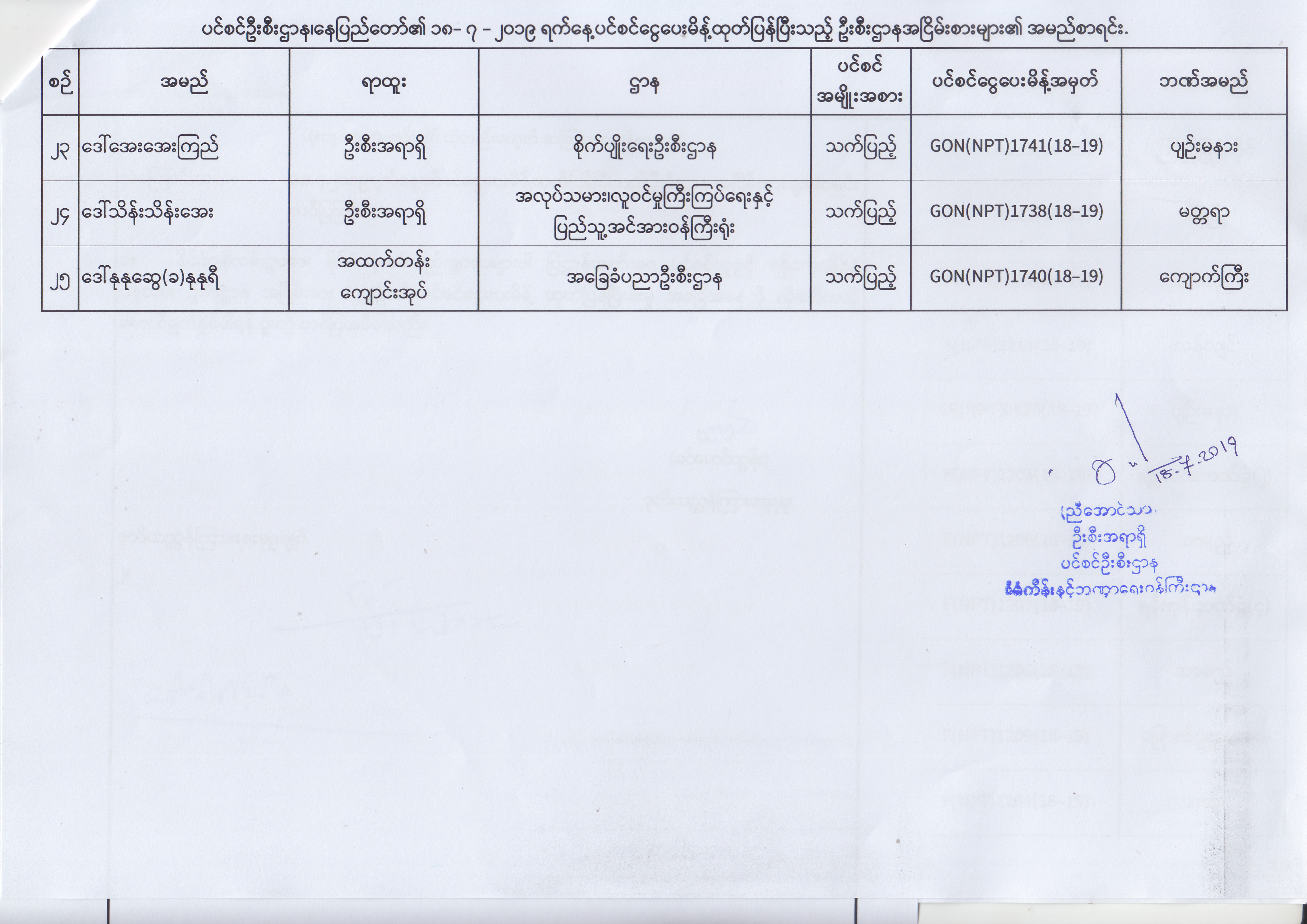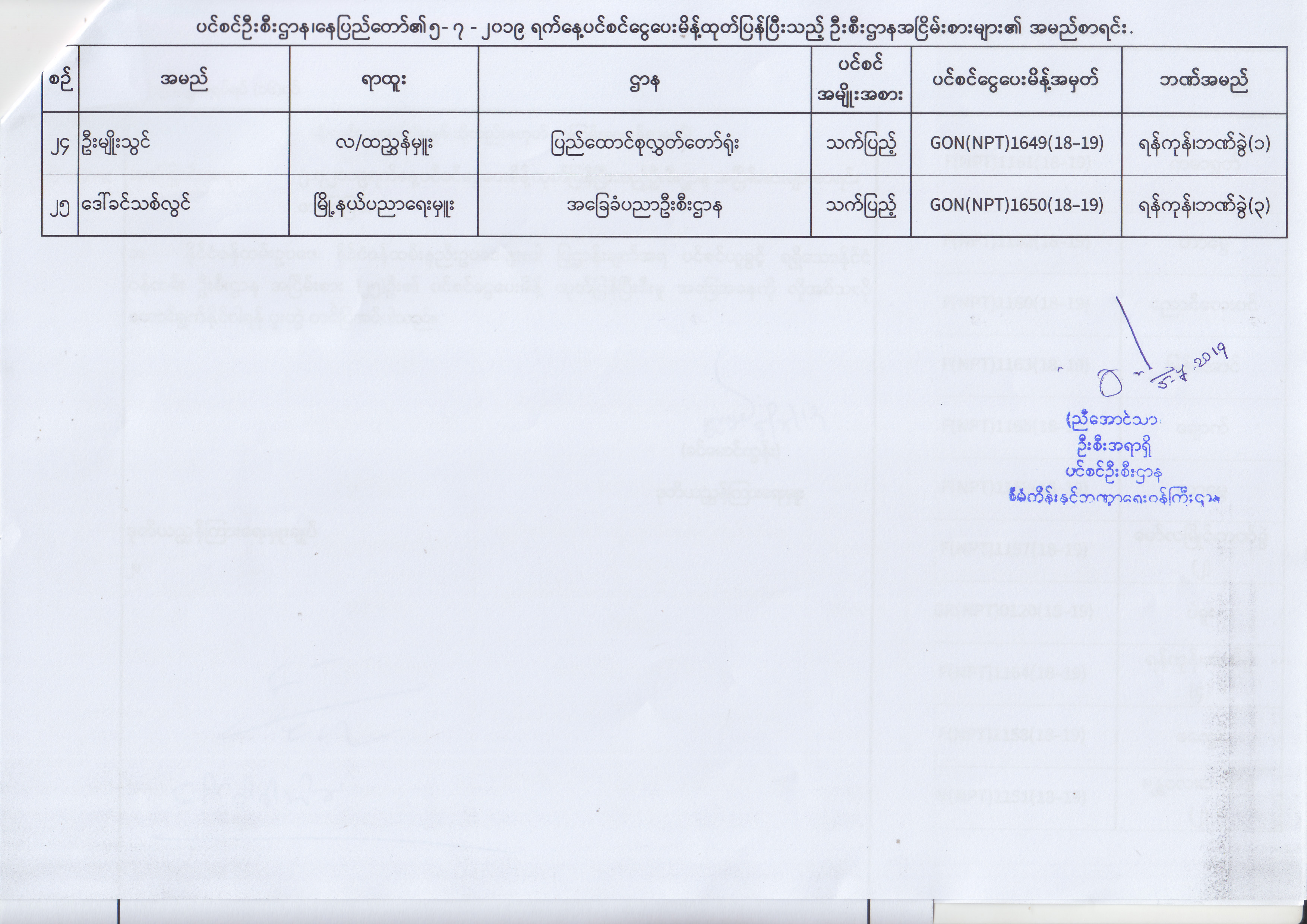 ပင်စင်ဦးစီးဌာန၊ နေပြည်တော်၏ (၂၄.၆.၂၀၁၉) မှ (၆.၈.၂၀၁၉) ရက်နေ့အထိ ပင်စင်ငွေပေးမိန့်ထုတ်ပြန်ပြီးသည့် ဦးစီးဌာနအငြိမ်းစားများ၏ အမည်စာရင်း pension_editor Thu, 08/08/2019 - 11:59