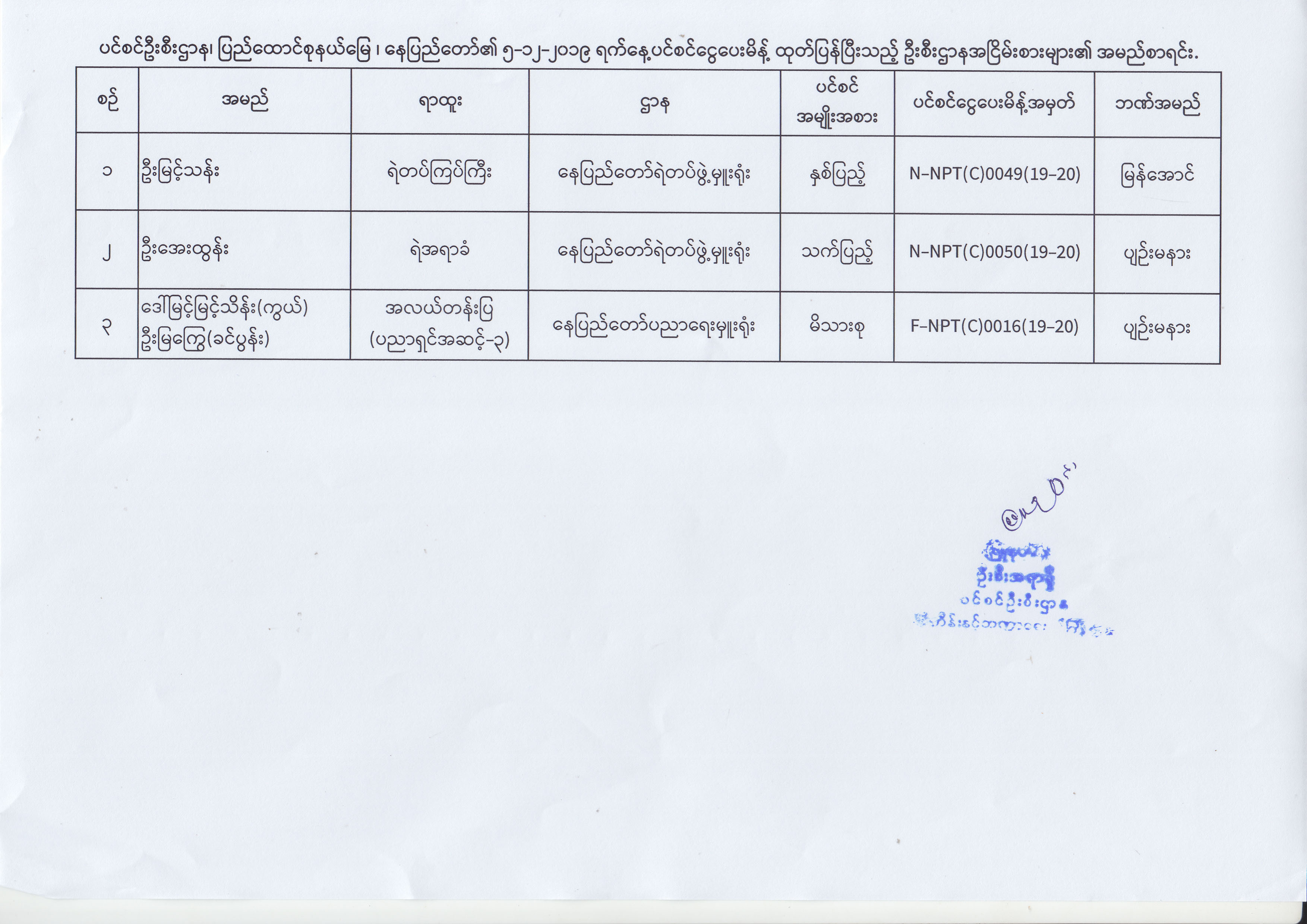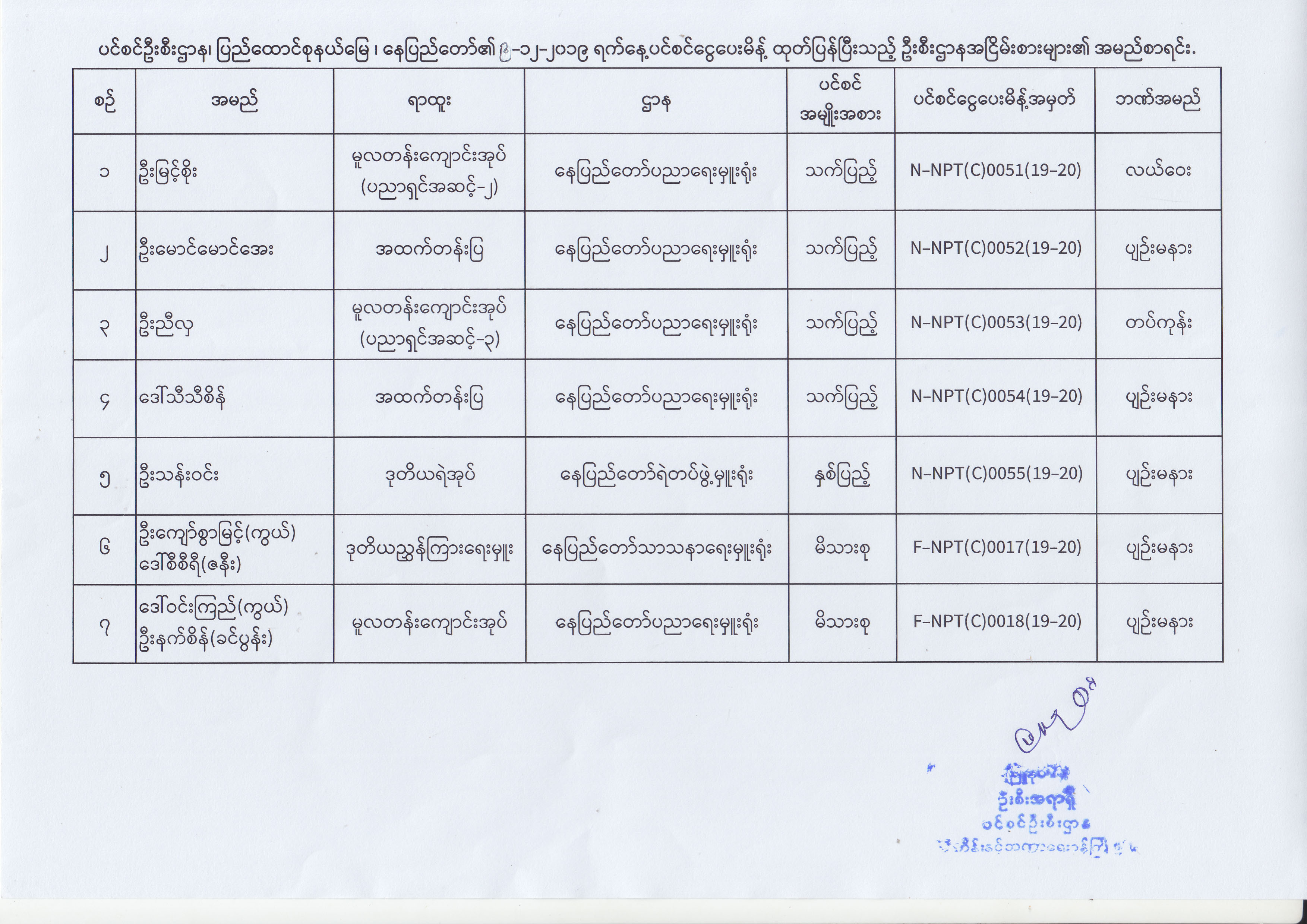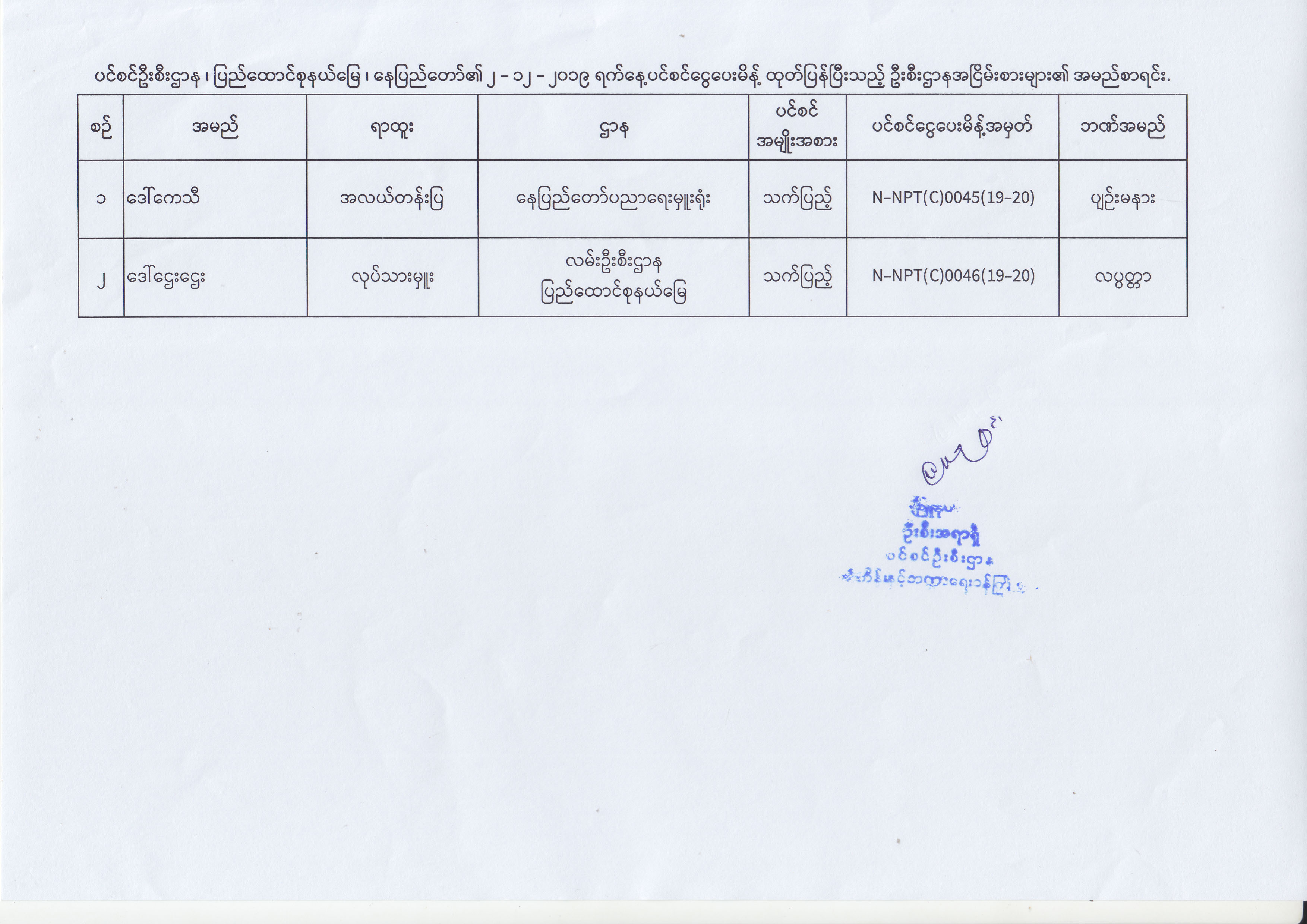 ပင်စင်ဦးစီးဌာန၊ နေပြည်တော်ကောင်စီနယ်မြေ၏ (၂.၁၂.၂၀၁၉) မှ (၁၂.၁၂.၂၀၁၉) ရက်နေ့အထိ ပင်စင်ငွေပေးမိန့်ထုတ်ပြန်ပြီးသည့် ဦးစီးဌာန အငြိမ်းစားများ၏ အမည်စာရင်း pension_editor Wed, 12/18/2019 - 14:11
