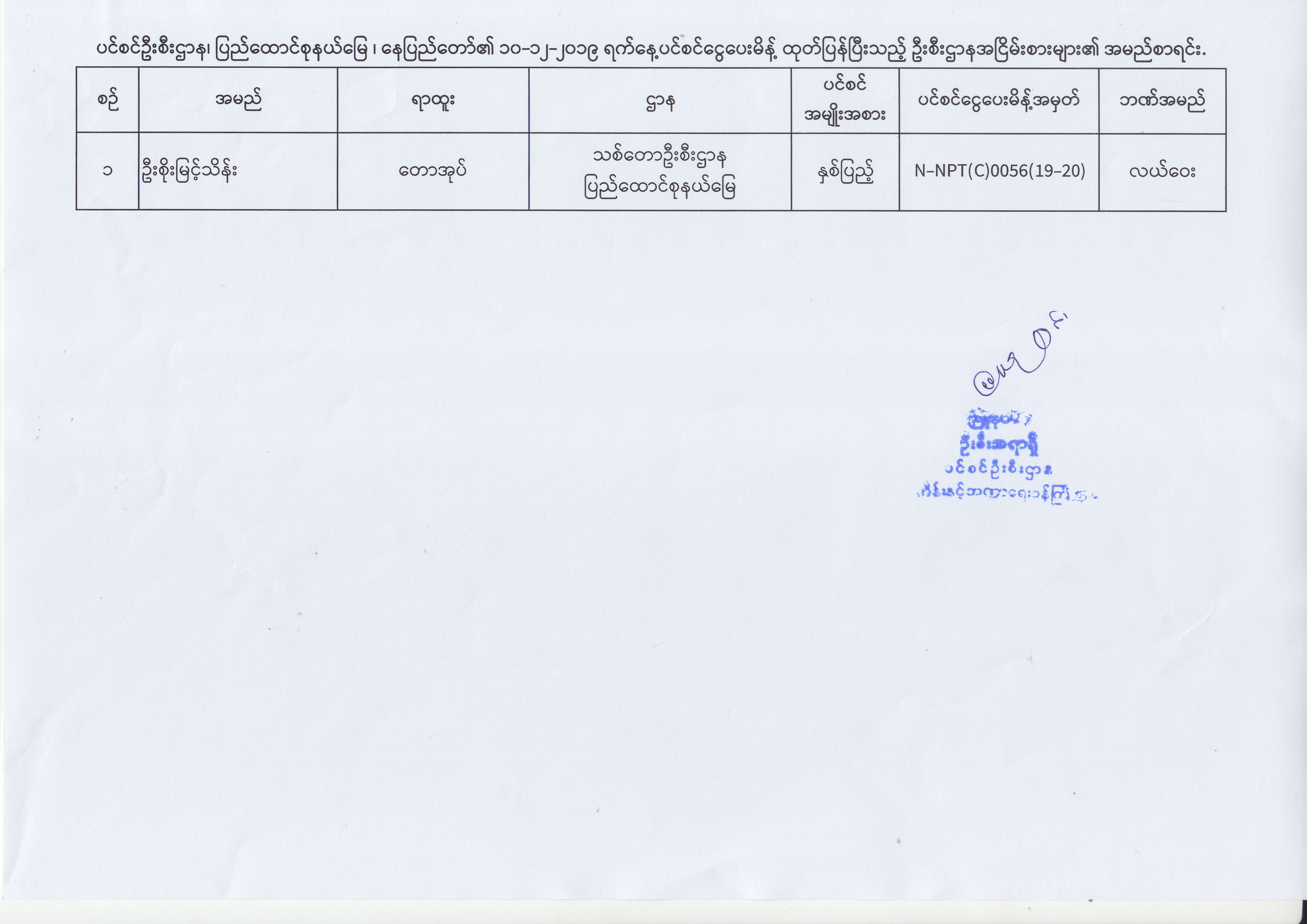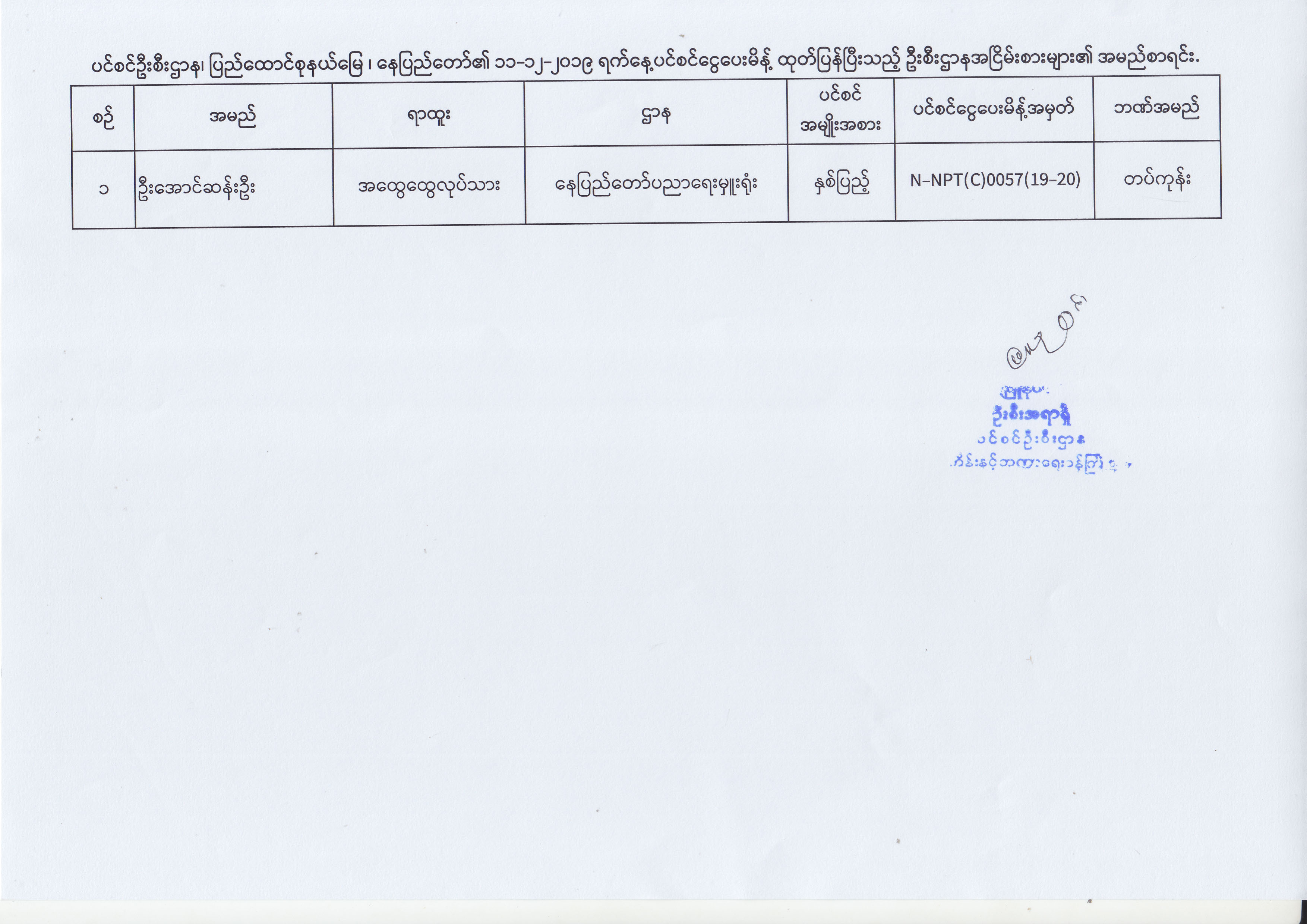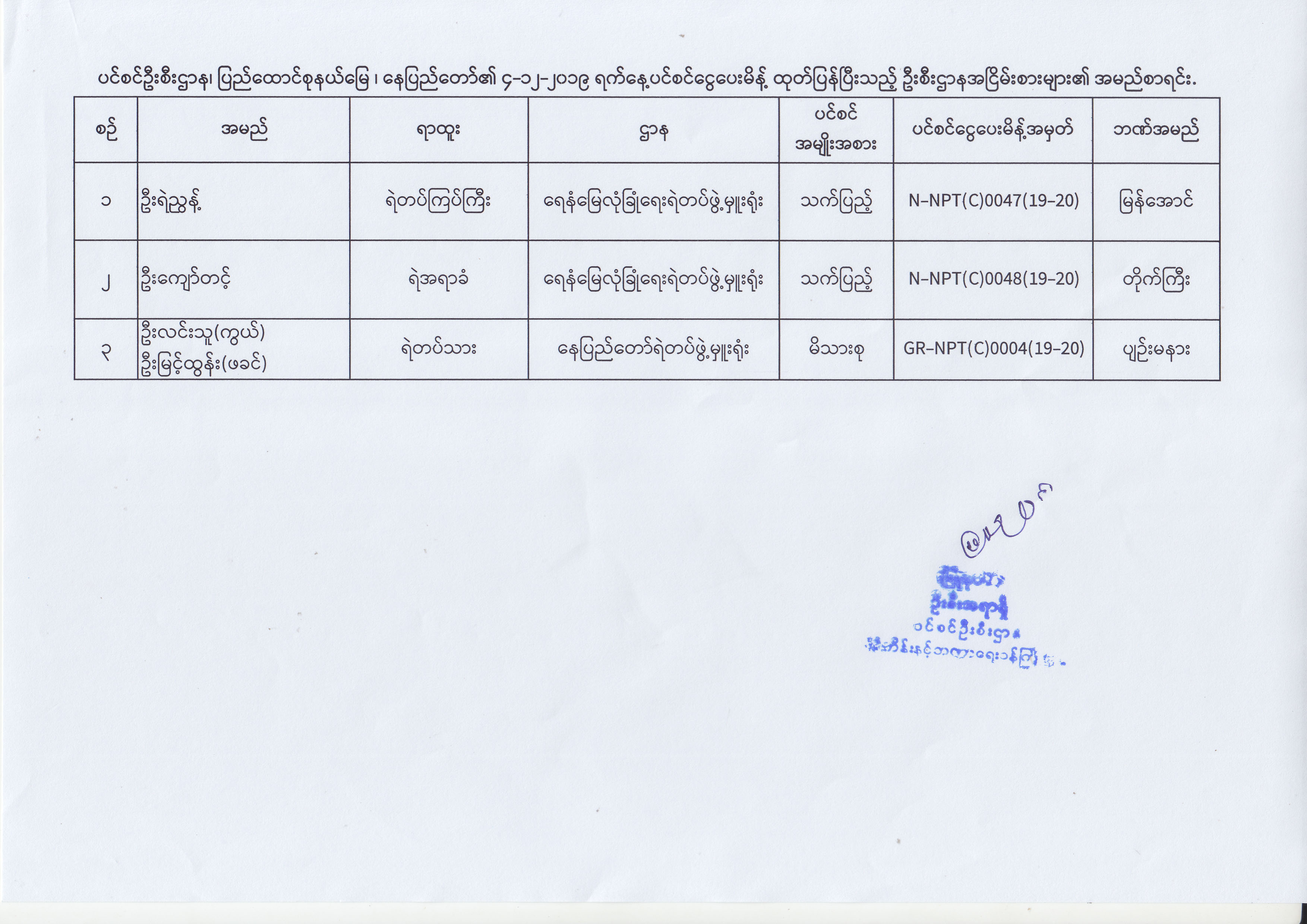 ပင်စင်ဦးစီးဌာန၊ နေပြည်တော်ကောင်စီနယ်မြေ၏ (၂.၁၂.၂၀၁၉) မှ (၁၂.၁၂.၂၀၁၉) ရက်နေ့အထိ ပင်စင်ငွေပေးမိန့်ထုတ်ပြန်ပြီးသည့် ဦးစီးဌာန အငြိမ်းစားများ၏ အမည်စာရင်း pension_editor Wed, 12/18/2019 - 14:11