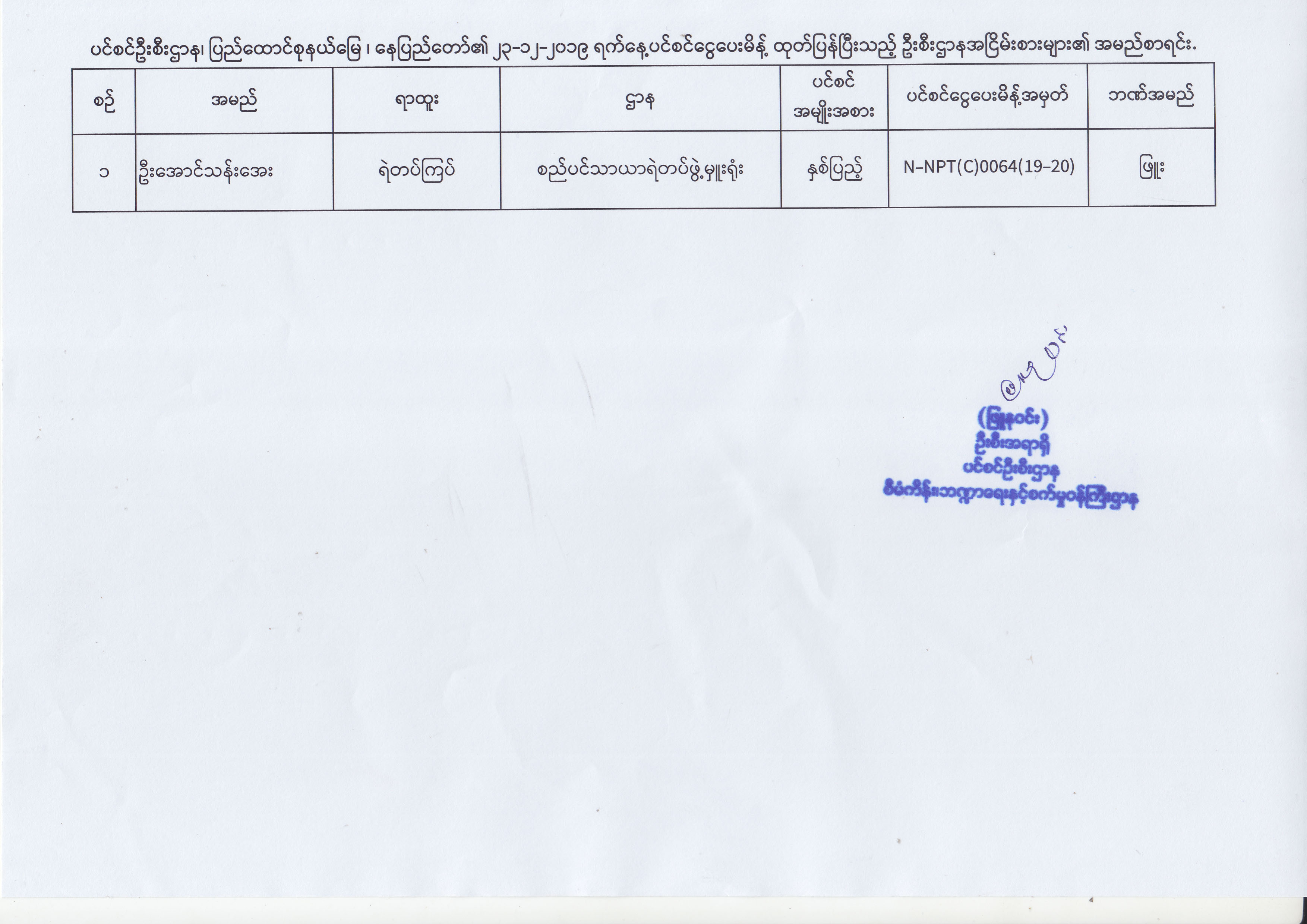 ပင်စင်ဦးစီးဌာန၊ နေပြည်တော်ကောင်စီနယ်မြေ၏ (၂၃.၁၂.၂၀၁၉) ရက်နေ့အထိ ပင်စင်ငွေပေးမိန့်ထုတ်ပြန်ပြီးသည့် ဦးစီးဌာန အငြိမ်းစားများ၏ အမည်စာရင်း pension_editor Fri, 01/03/2020 - 13:56
