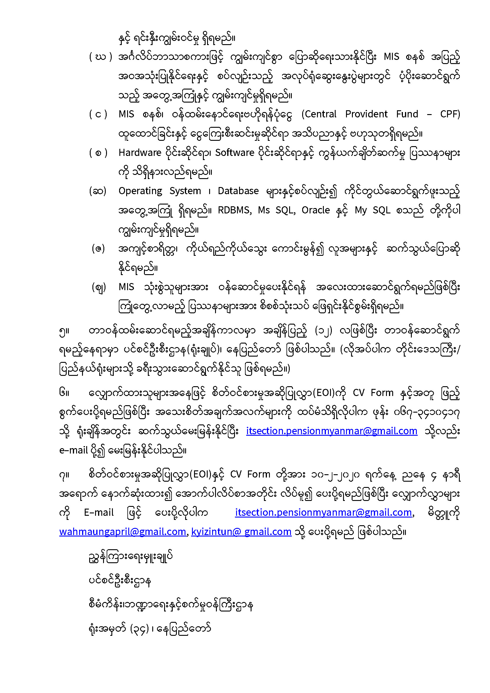 စီမံကိန်း၊ ဘဏ္ဍာရေးနှင့်စက်မှုဝန်ကြီးဌာန၊ ပင်စင်ဦးစီးဌာနမှ အိတ်ဖွင့်တင်ဒါခေါ်ယူခြင်း pension_editor Fri, 01/24/2020 - 11:27