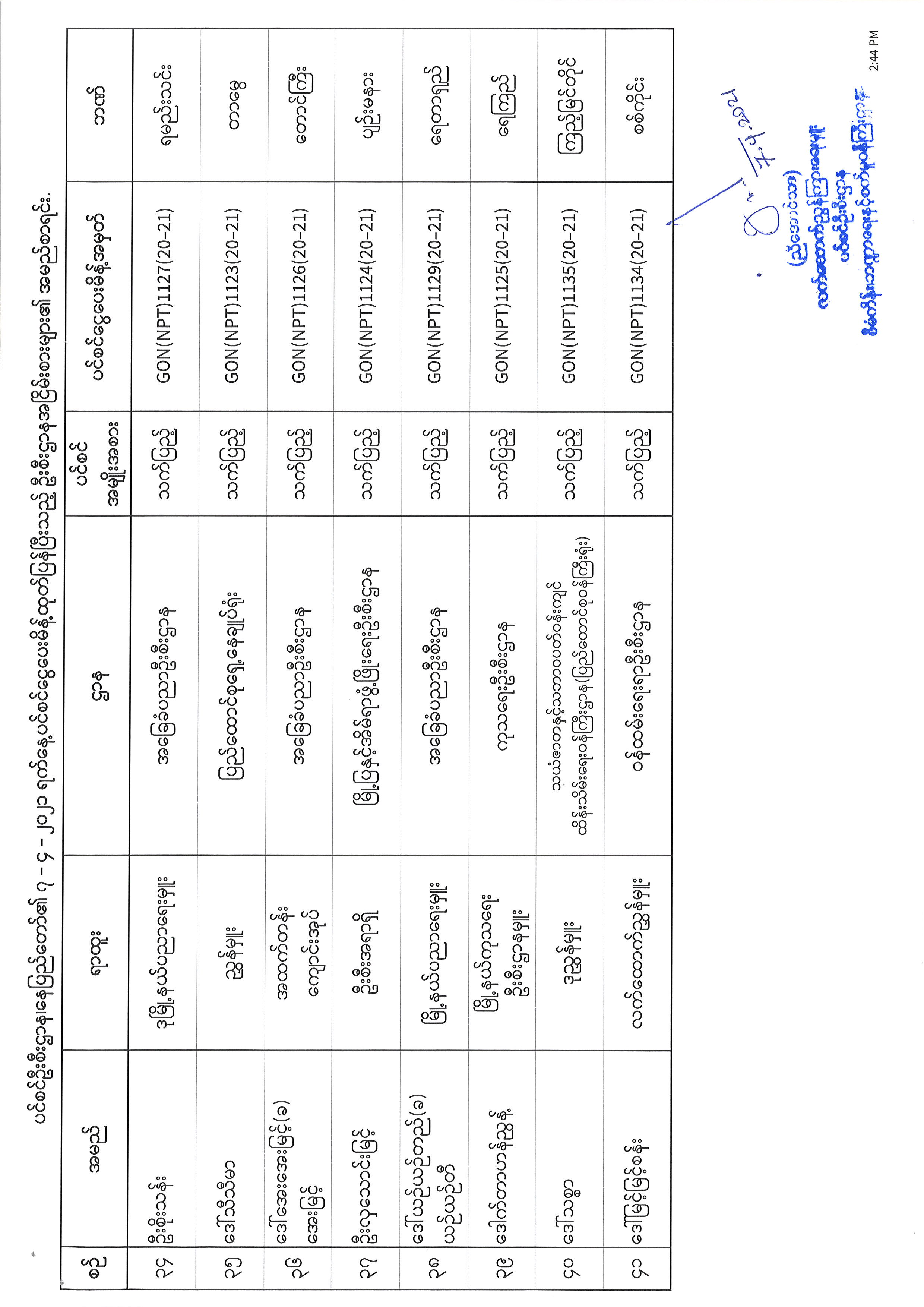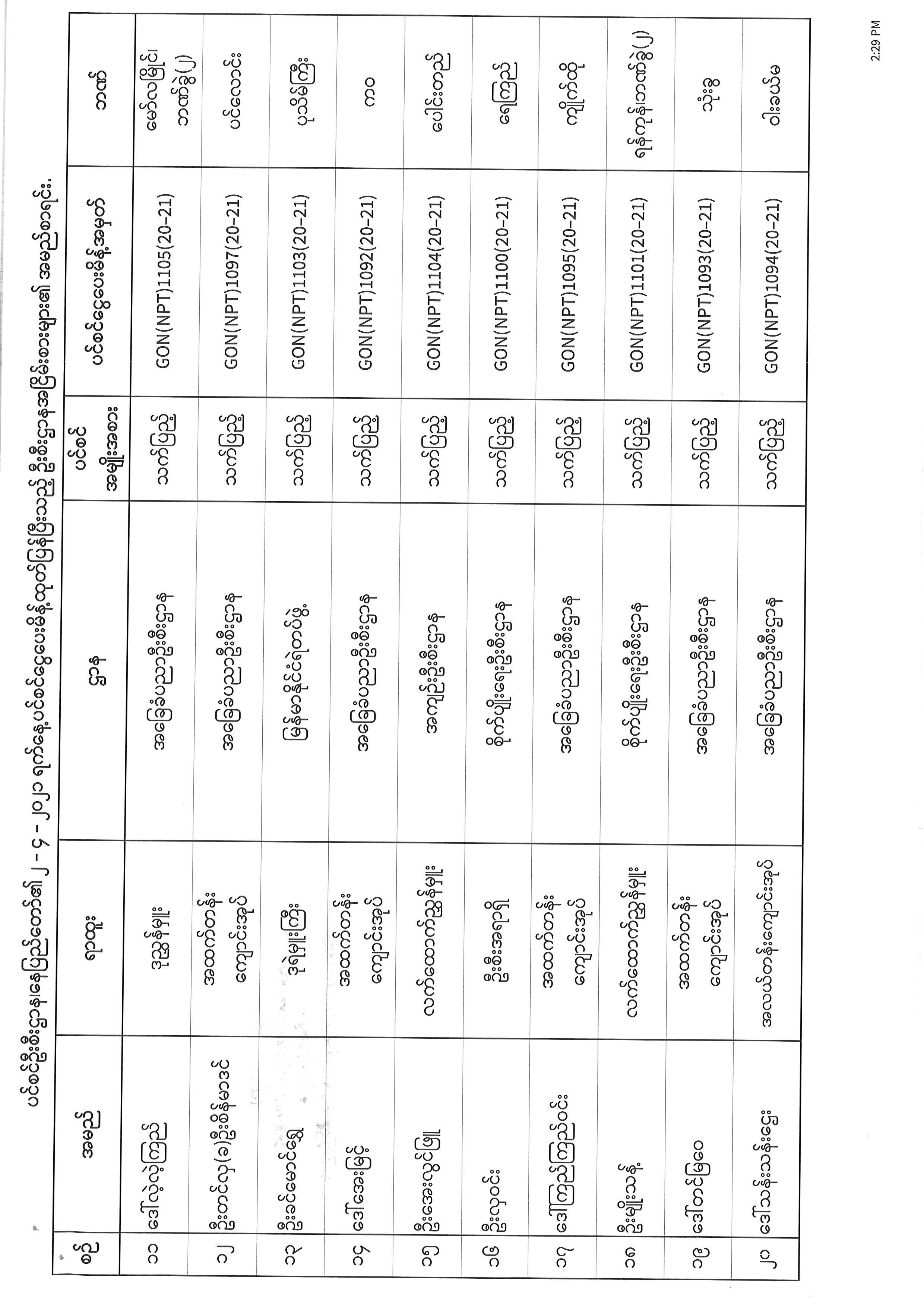 ပင်စင်ဦးစီးဌာန၊ နေပြည်တော်ရှိ ငွေပေးမိန့်ထုတ်ပြန်ပြီးသည့် ဦးစီးဌာနအငြိမ်းစားစာရင်း (၃၀.၃.၂၀၂၁ မှ ၄.၄.၂၀၂၁)