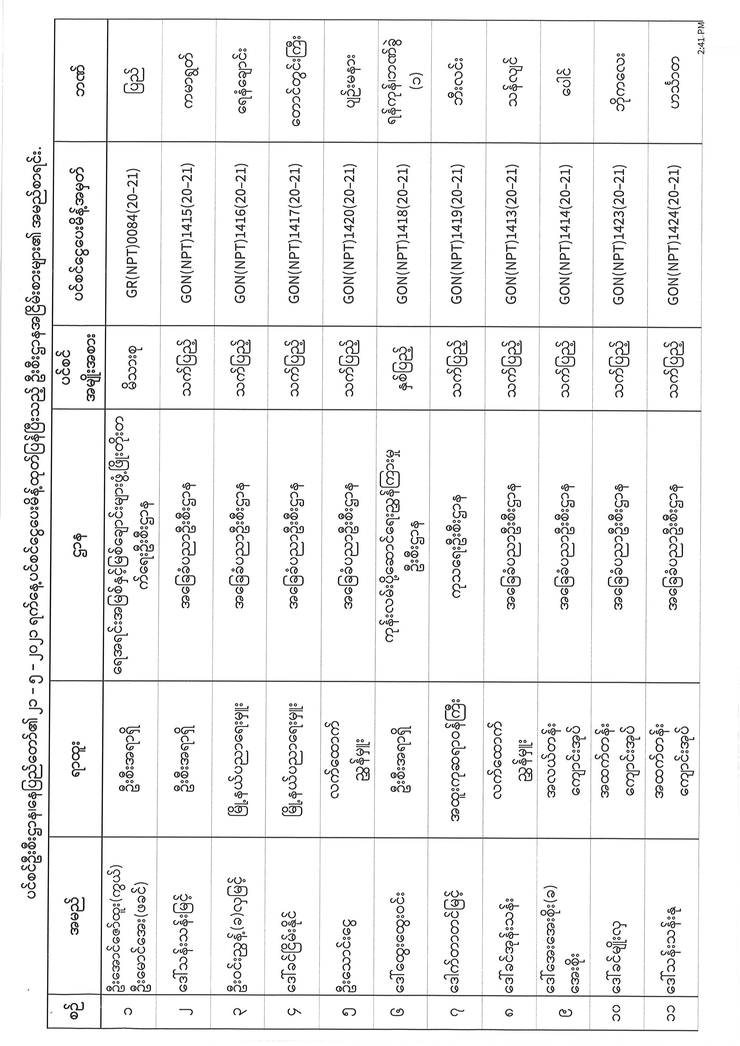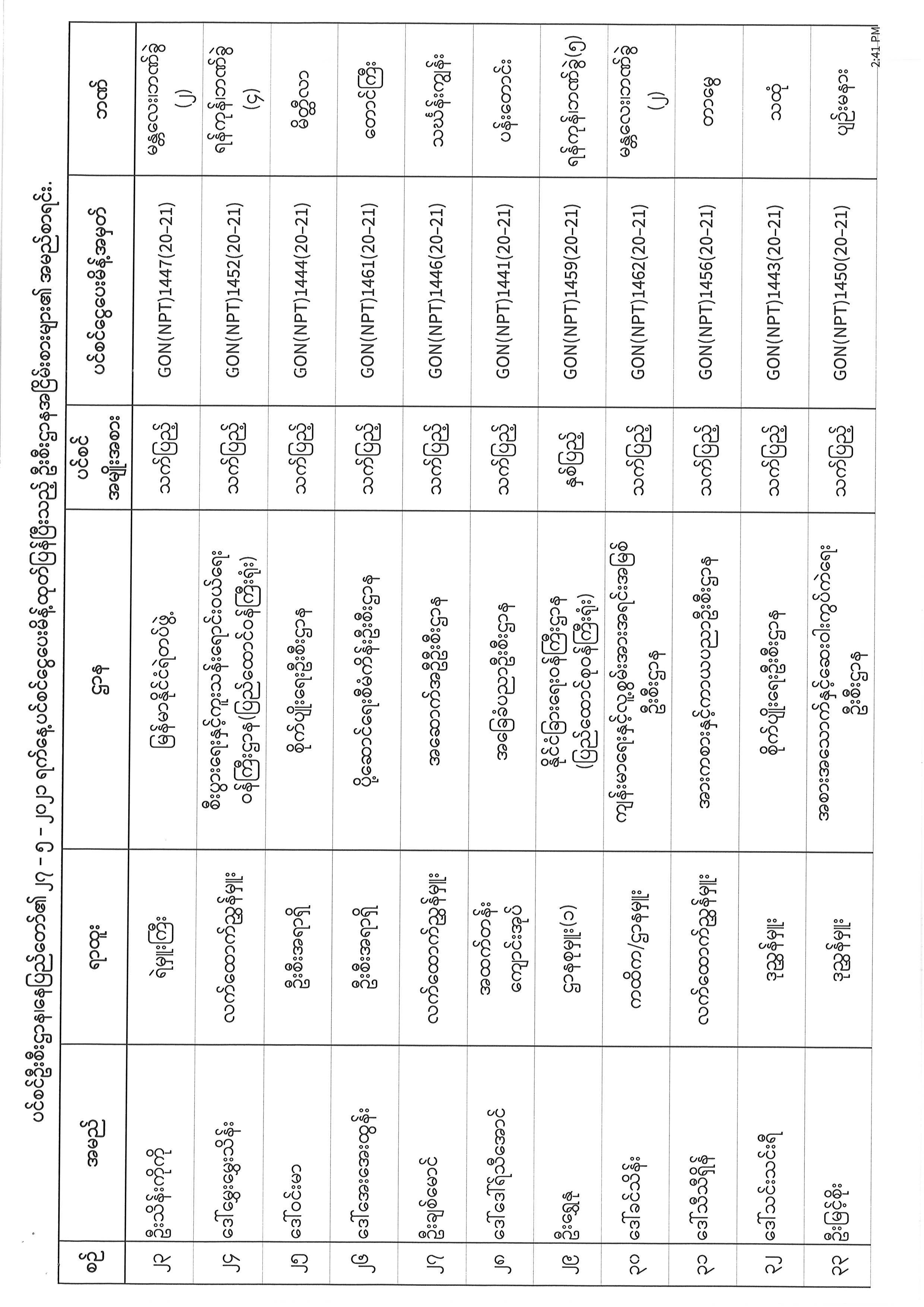 ပင်စင်ဦးစီးဌာန၊ နေပြည်တော်ရှိ ငွေပေးမိန့်ထုတ်ပြန်ပြီးသည့် ဦးစီးဌာနအငြိမ်းစားစာရင်း (၂၁.၅.၂၀၂၁ မှ ၂၇.၅.၂၀၂၁) pension_editor Tue, 06/15/2021 - 20:19