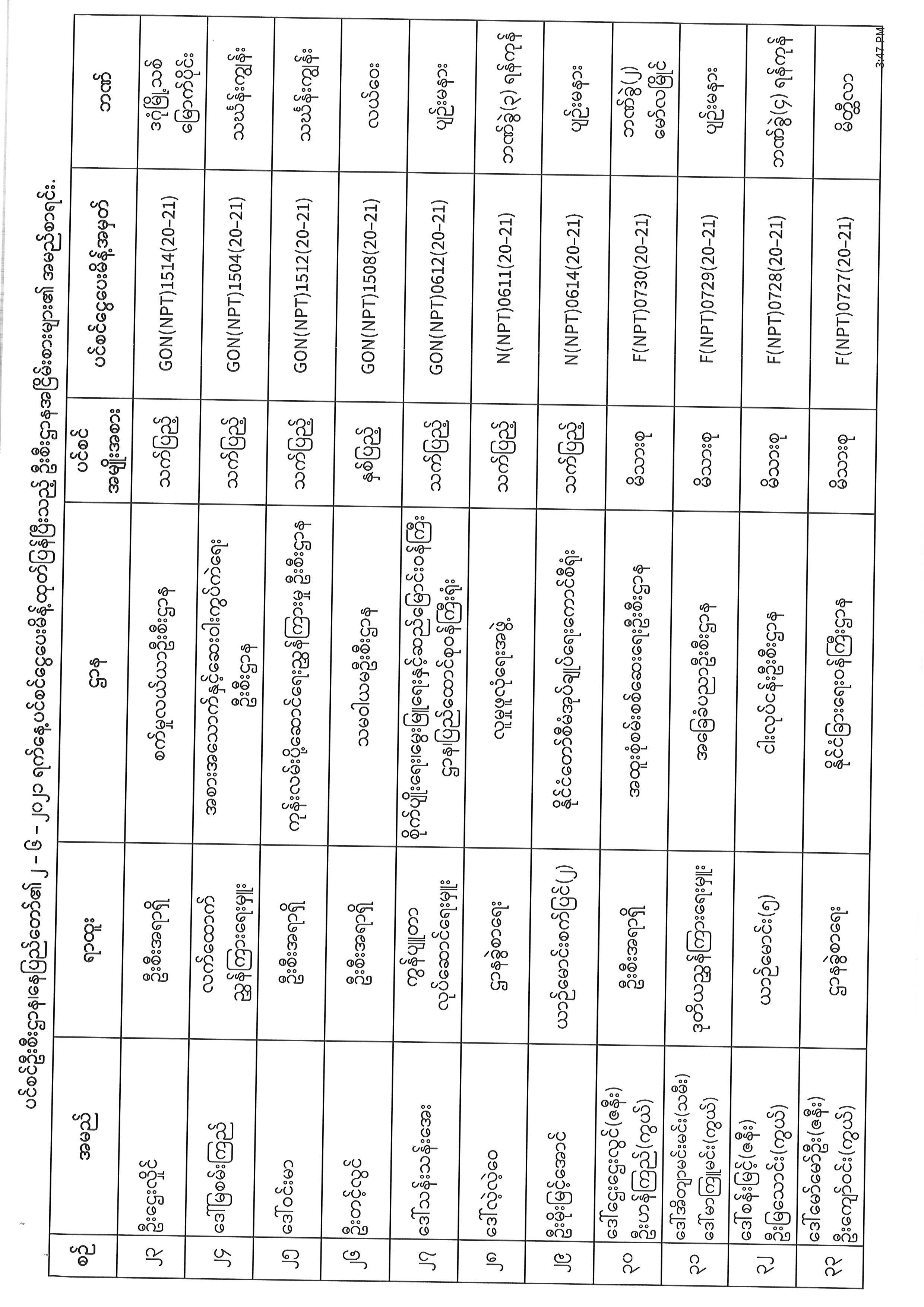 ပင်စင်ဦးစီးဌာန၊ နေပြည်တော်ရှိ ငွေပေးမိန့်ထုတ်ပြန်ပြီးသည့် ဦးစီးဌာနအငြိမ်းစားစာရင်း (၁.၆.၂၀၂၁ မှ ၁၁.၆.၂၀၂၁) pension_editor Tue, 06/15/2021 - 20:34