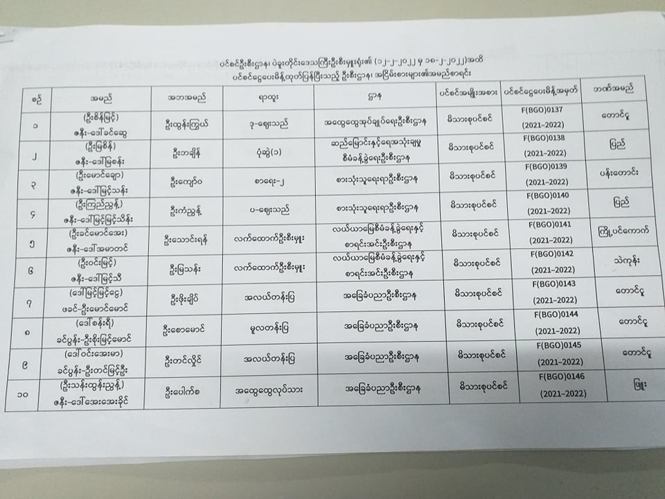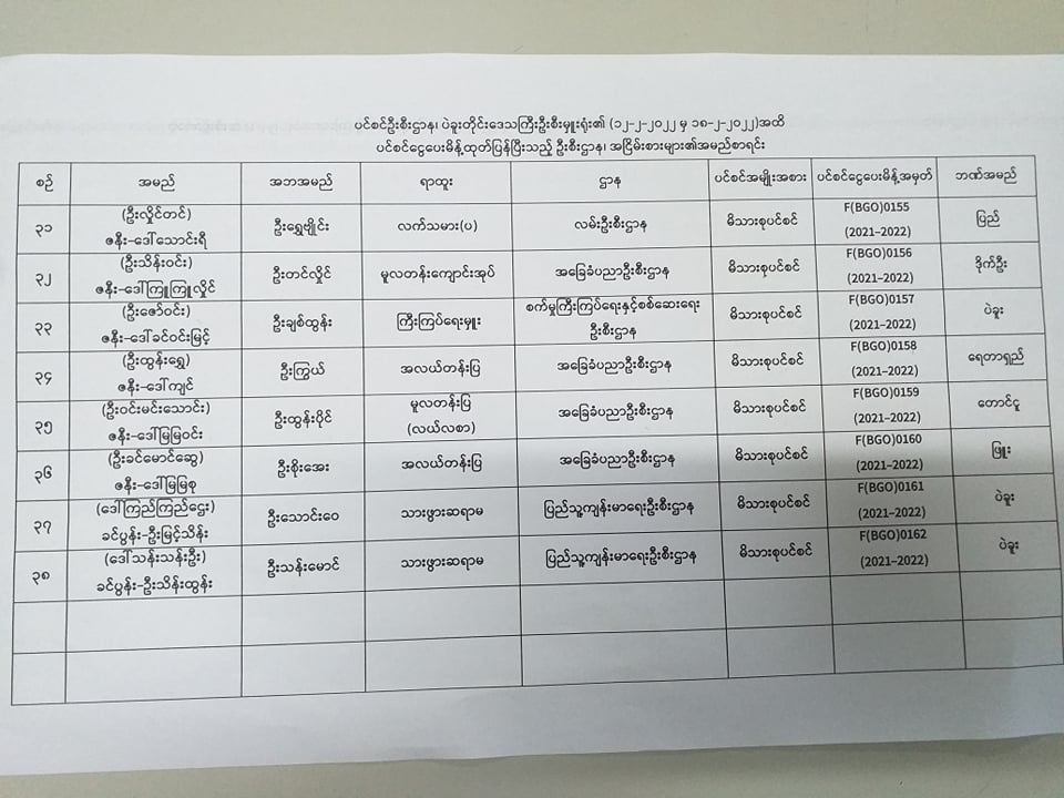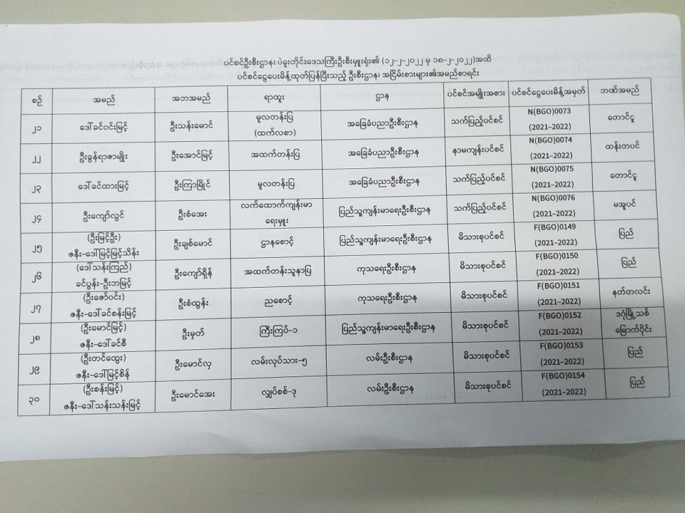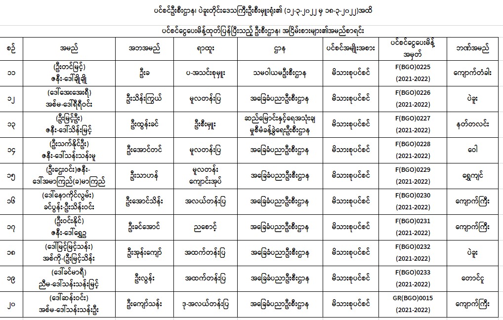 ပင်စင်ဦးစီးဌာန၊ ပဲခူးတိုင်းဒေသကြီးဦးစီးမှူးရုံး၏ ငွေပေးမိန့်ထုတ်ပြန်မှုစာရင်း (၁၂-၂-၂၀၂၂ မှ ၁၈-၂-၂၀၂၂)