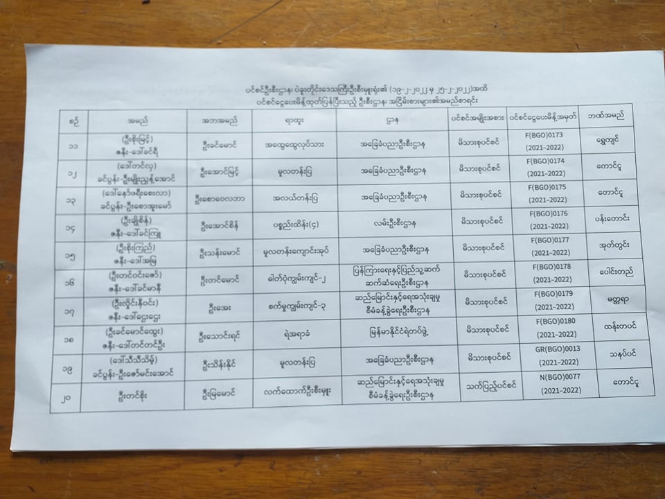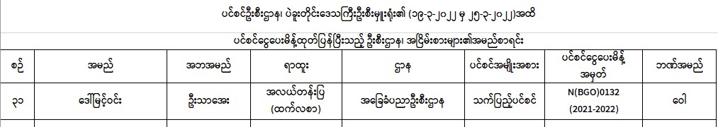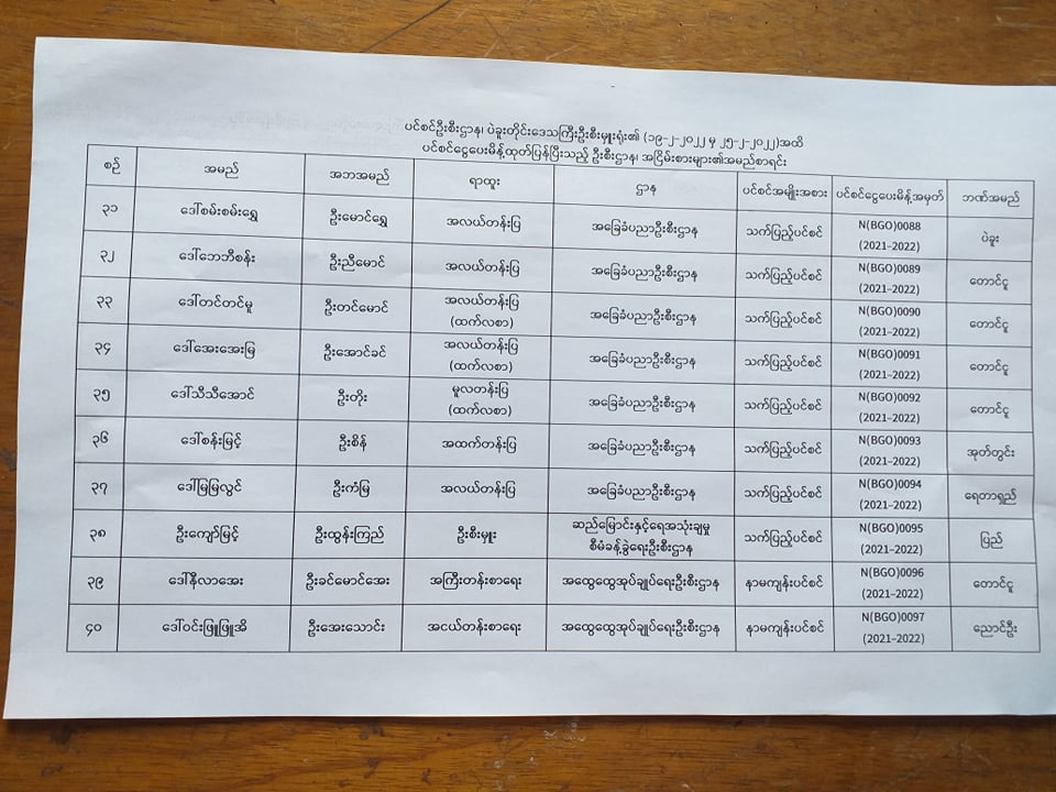 ပင်စင်ဦးစီးဌာန၊ ပဲခူးတိုင်းဒေသကြီးဦးစီးမှူးရုံး၏ ငွေပေးမိန့်ထုတ်ပြန်မှုစာရင်း (၁၉-၂-၂၀၂၂ မှ ၂၅-၂-၂၀၂၂) pension_editor Fri, 03/04/2022 - 10:36