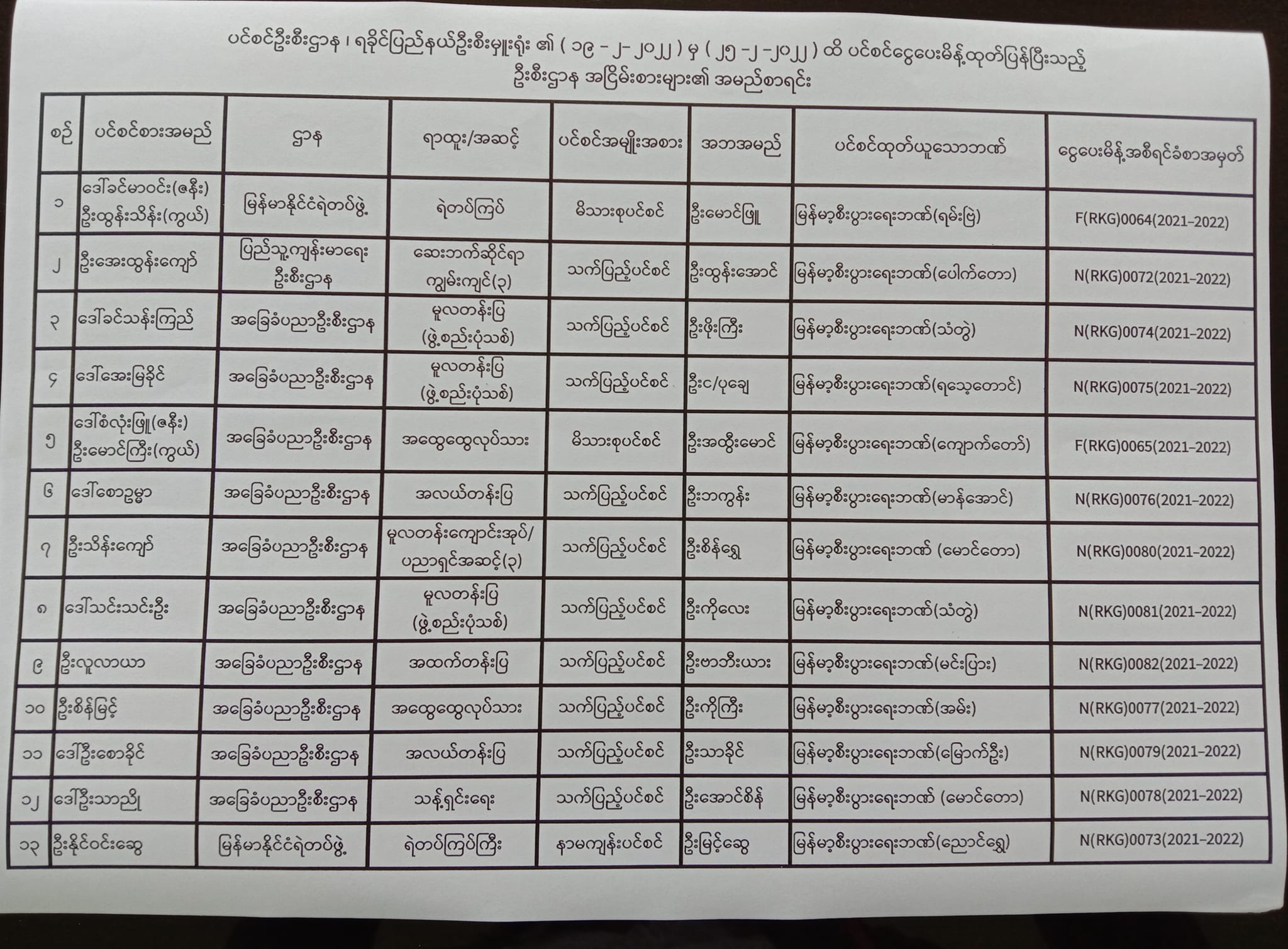 ပင်စင်ဦးစီးဌာန၊ ရခိုင်ပြည်နယ်ဦးစီးမှူးရုံး၏ ငွေပေးမိန့်ထုတ်ပြန်မှုစာရင်း (၁၉-၂-၂၀၂၂ မှ ၂၅-၂-၂၀၂၂) pension_editor Fri, 03/04/2022 - 10:39