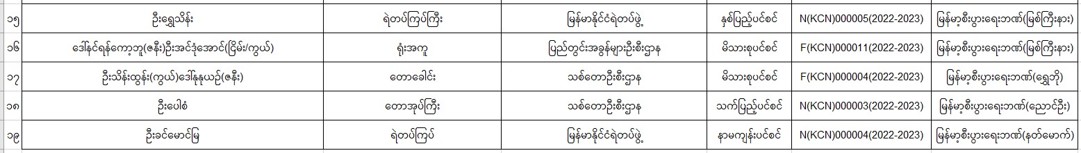 ပင်စင်ဦးစီးဌာန၊ ကချင်ပြည်နယ်ဦးစီးမှူးရုံး၏ ငွေပေးမိန့်ထုတ်ပြန်မှုစာရင်း ငွေပေးမိန့်ထုတ်ပြန်မှု စာရင်း (၂၆-၃-၂၀၂၂ မှ ၈-၄-၂၀၂၂) pension_editor Fri, 04/08/2022 - 14:22
