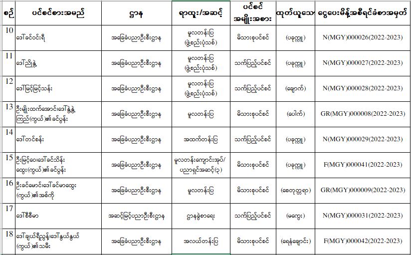 ပင်စင်ဦးစီးဌာန၊ မကွေးတိုင်းဒေသကြီးဦးစီးမှူးရုံး၏ ငွေပေးမိန့်ထုတ်ပြန်မှုစာရင်း (မေလ ပထမအပတ်အတွင်း) pension_editor Thu, 05/05/2022 - 15:22