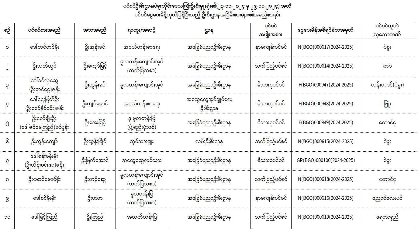 ပင်စင်ဦးစီးဌာန၊ မန္တလေးတိုင်းဒေသကြီးဦးစီးမှူးရုံး၏ ဇွန်လအတွင်း ငွေပေးမိန့်ထုတ်ပြန်မှု စာရင်း (၁၁-၆-၂၀၂၂ မှ ၁၇-၆-၂၀၂၂) pension_editor Mon, 06/20/2022 - 16:20
