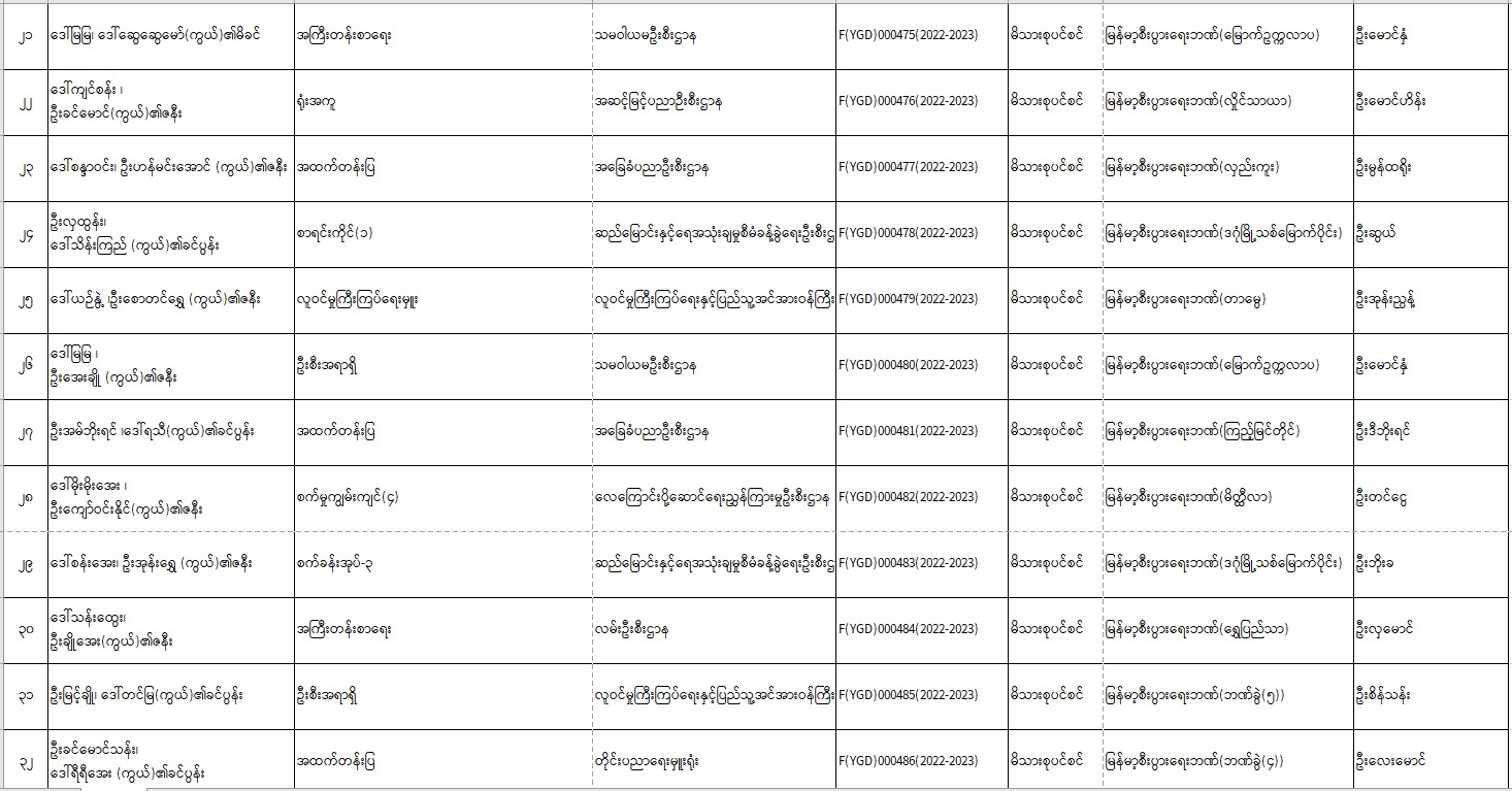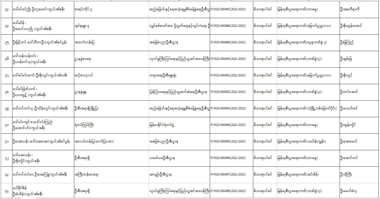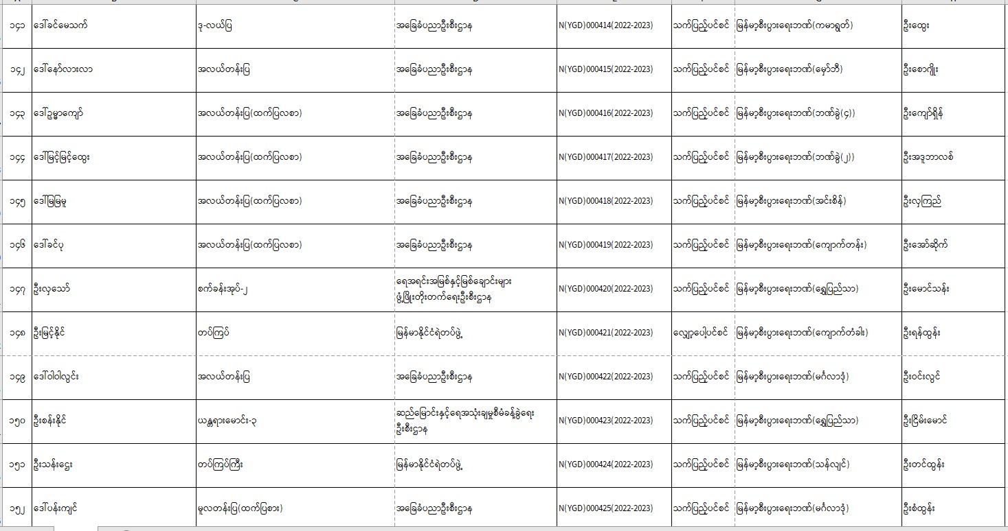 ပင်စင်ဦးစီးဌာန၊ရန်ကုန်တိုင်း၏ငွေပေးမိန့်ထုတ်ပြန်မှုစာရင်း(၁၆-၆-၂၀၂၂ မှ ၃၀-၆-၂၀၂၂) pension_editor Fri, 07/01/2022 - 14:43