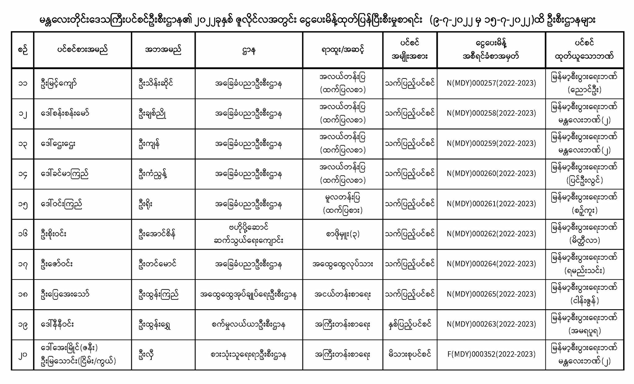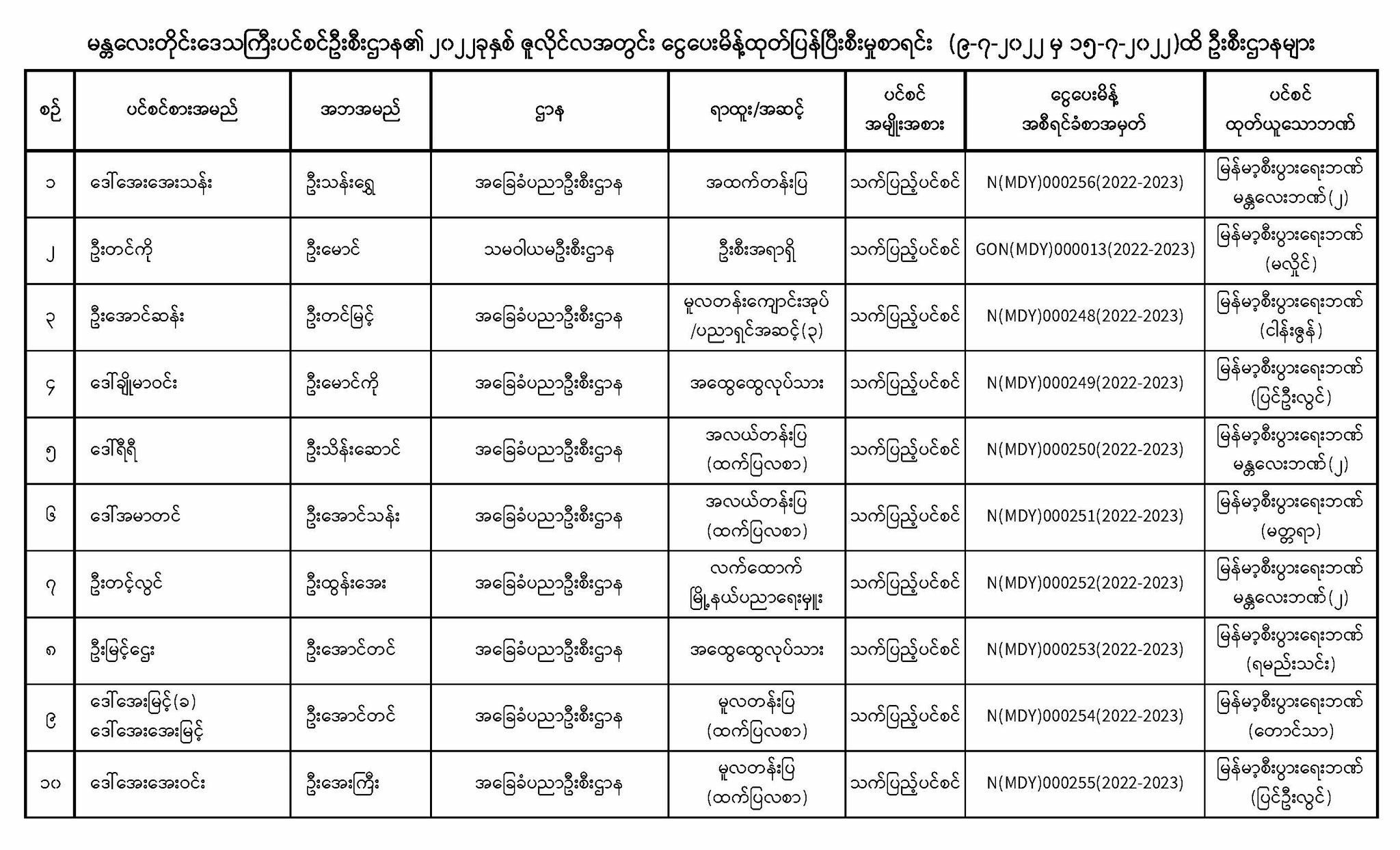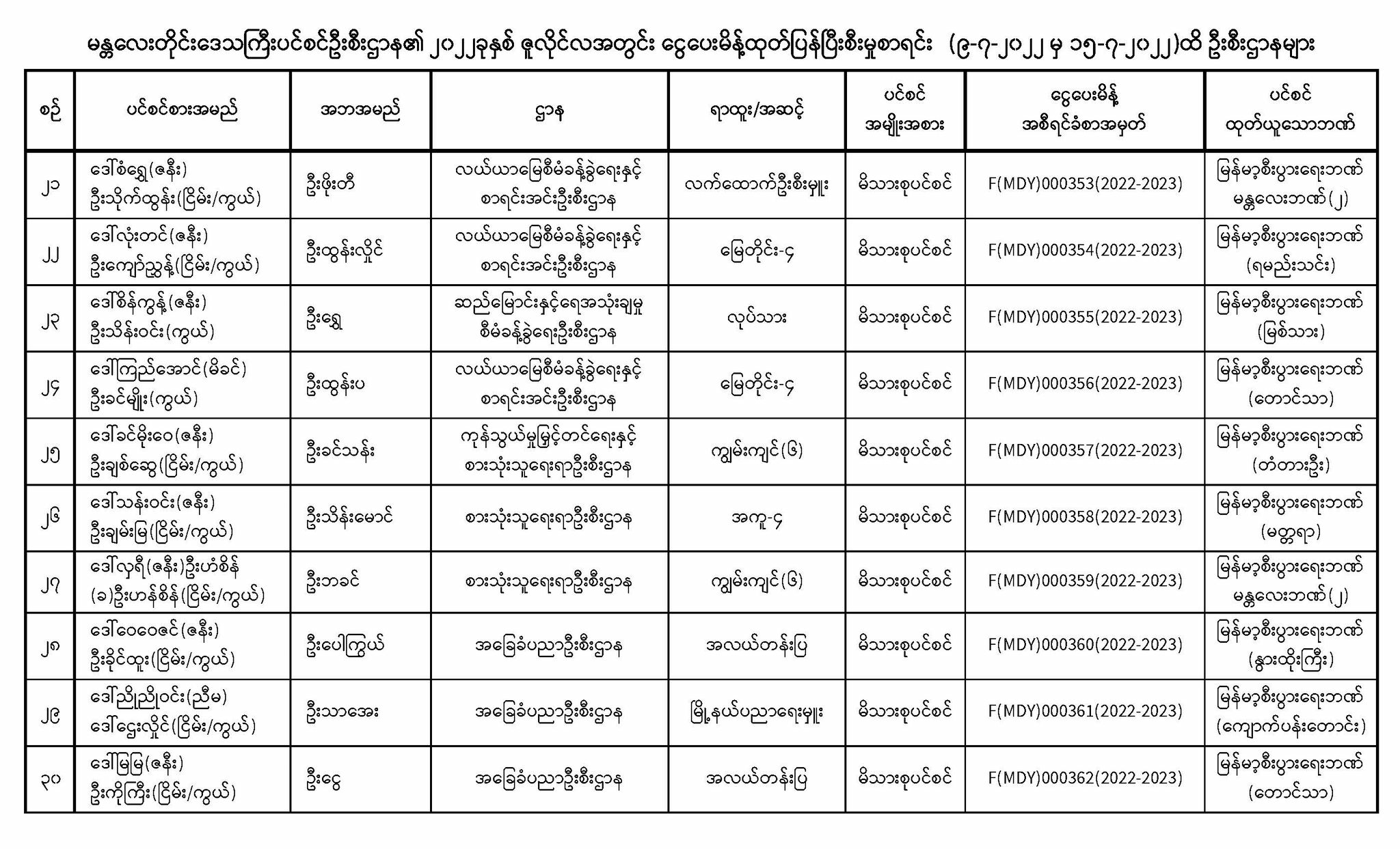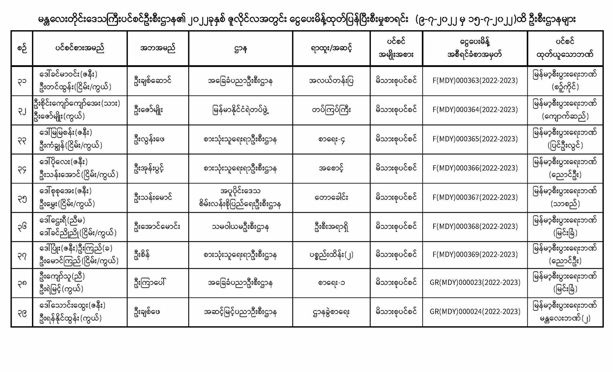 ပင်စင်ဦးစီးဌာန၊မန္တလေးတိုင်းဒေသကြီး၏ငွေပေးမိန့်ထုတ်ပြန်မှုစာရင်း(၉.၇.၂၀၂၂မှ၁၅.၇.၂၀၂၂) pension_editor Wed, 07/20/2022 - 09:48