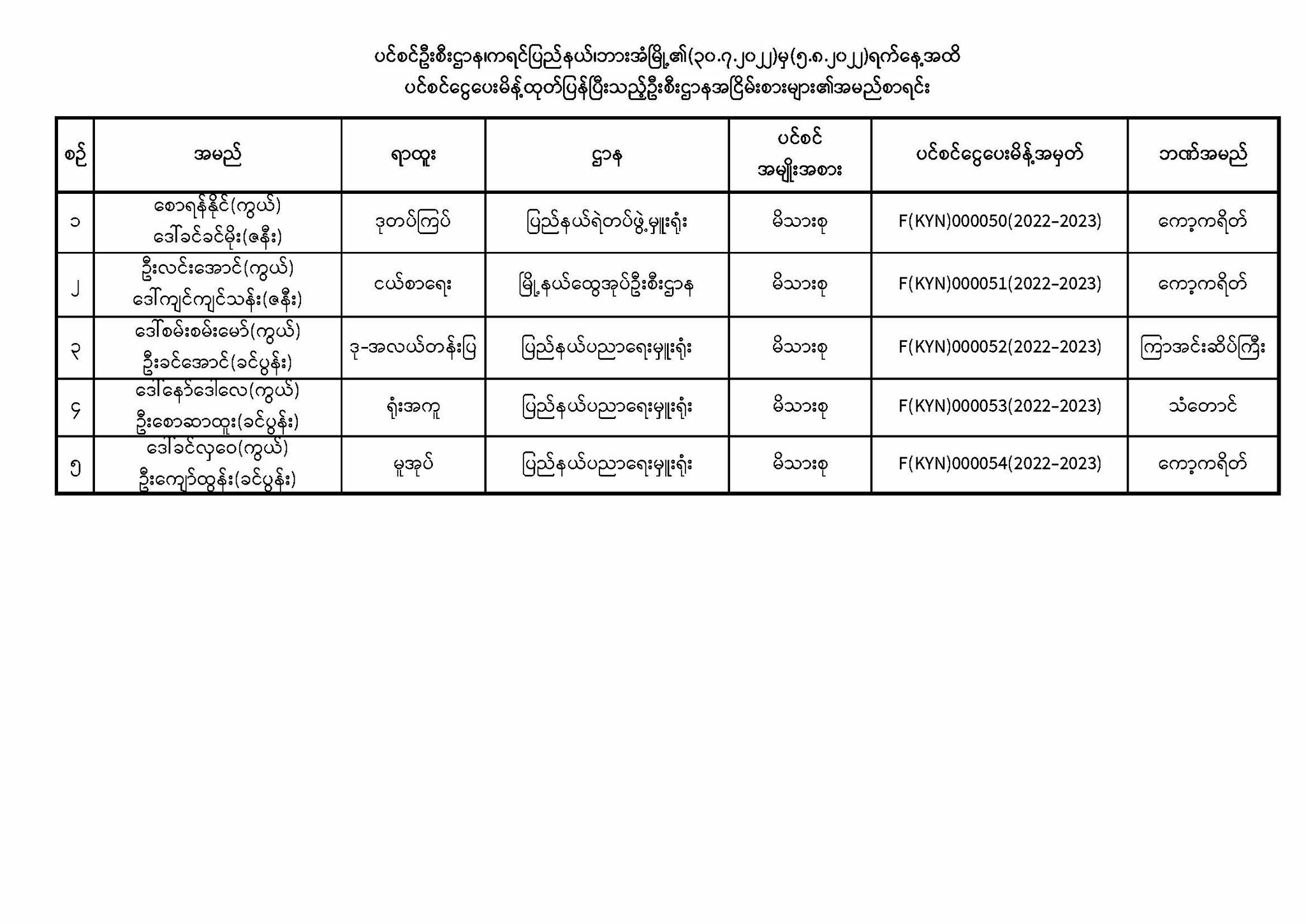 ပင်စင်ဦးစီးဌာန၊ကရင်ပြည်နယ်၏ငွေပေးမိန့်ထုတ်ပြန်မှုစာရင်း(၃၀.၇.၂၀၂၂ မှ ၅.၈.၂၀၂၂) pension_editor Thu, 08/04/2022 - 14:44