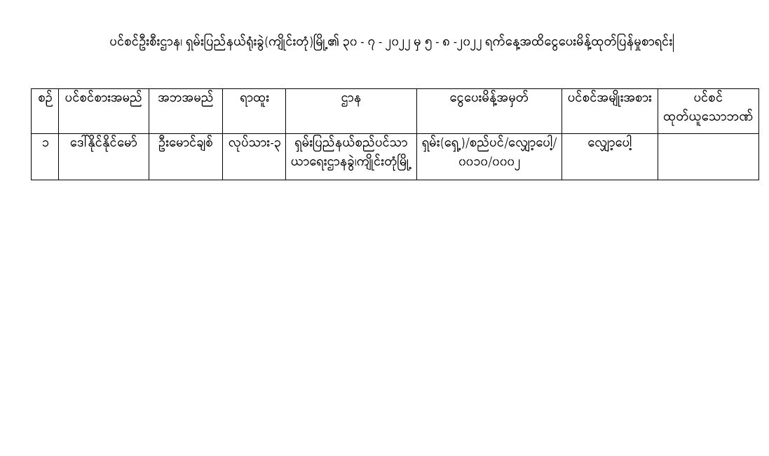 ပင်စင်ဦးစီးဌာန၊ ရှမ်းပြည်နယ်ရုံးခွဲ(ကျိုင်းတုံမြို့)၏ ငွေပေးမိန့်ထုတ်ပြန်မှုစာရင်း (၃၀-၇-၂၀၂၂ မှ ၅-၈-၂၀၂၂)