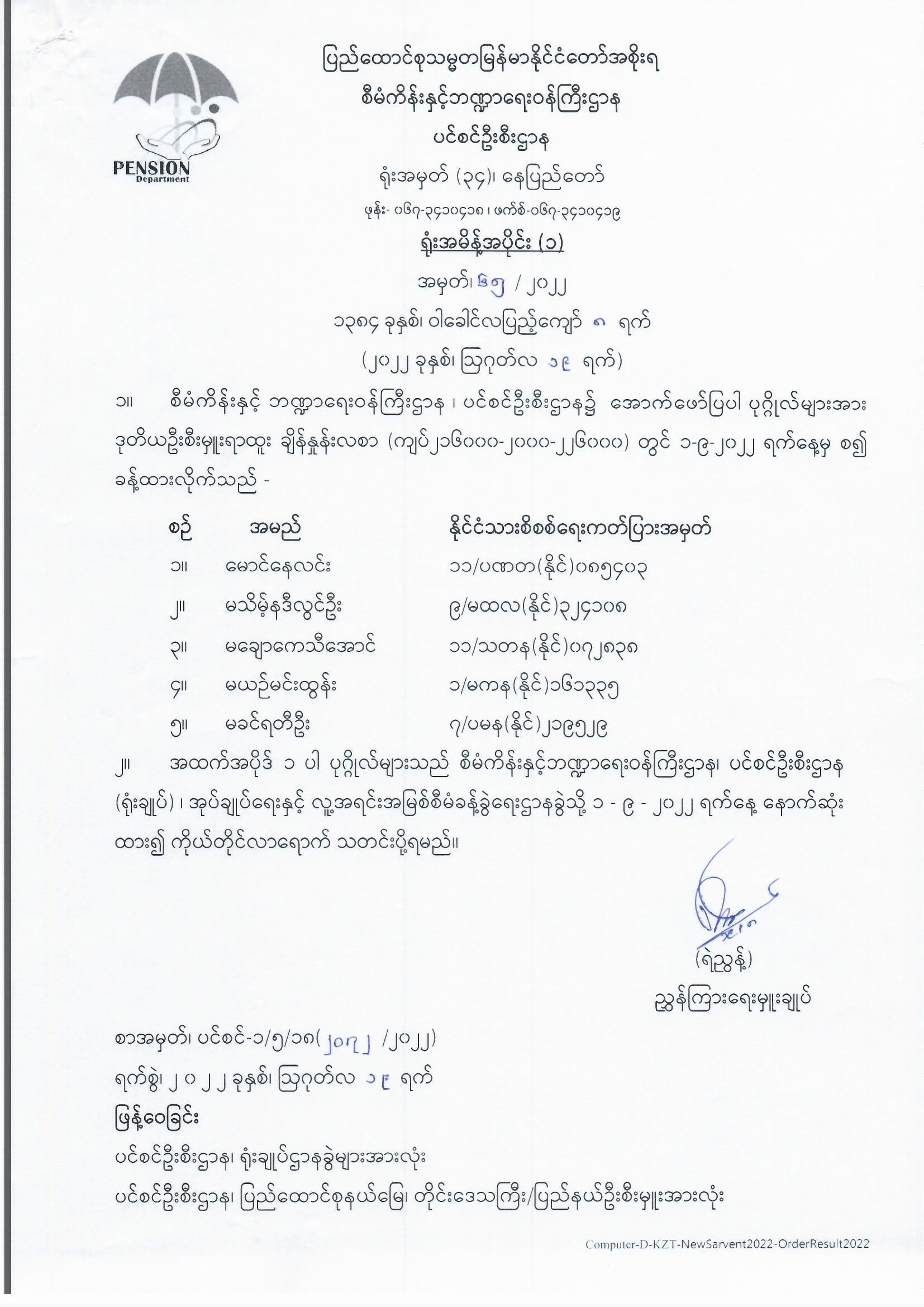 ပင်စင်ဦးစီးဌာနတွင် ဒုတိယဦးစီးမှူးရာထူးနေရာ ခန့်ထားခြင်းအတွက် အသိပေးကြေငြာခြင်း pension_editor Fri, 08/19/2022 - 15:46