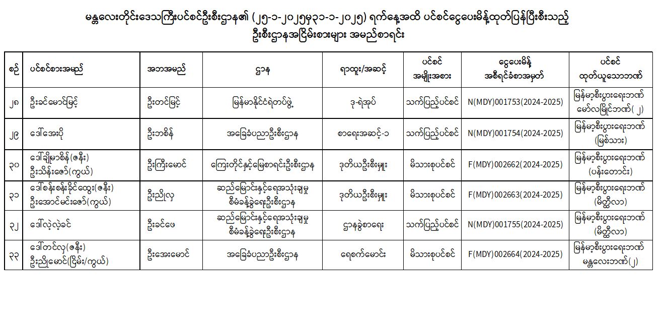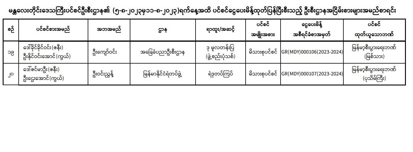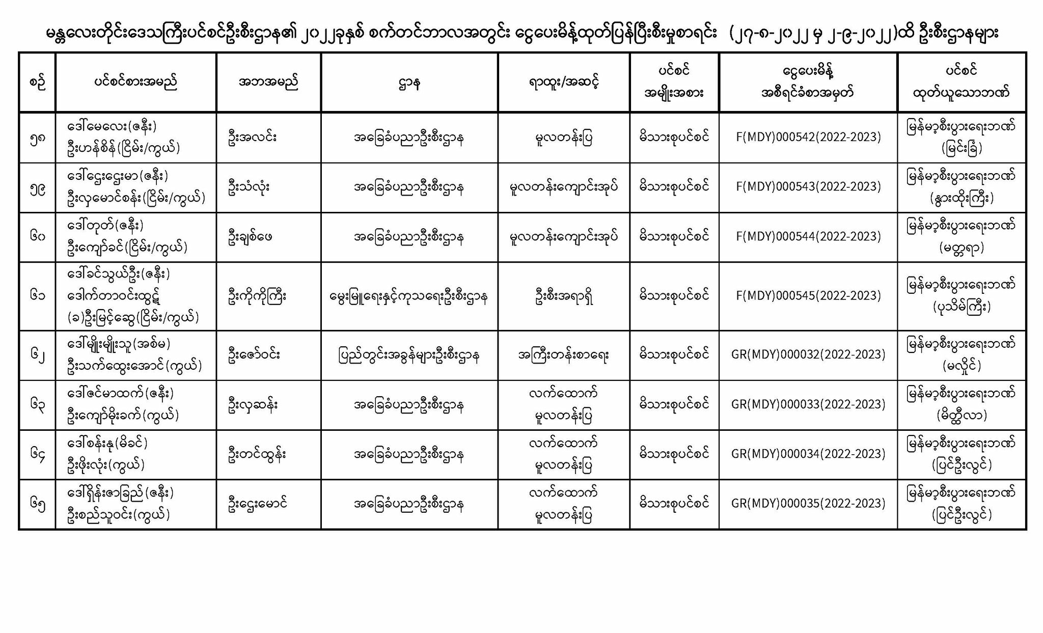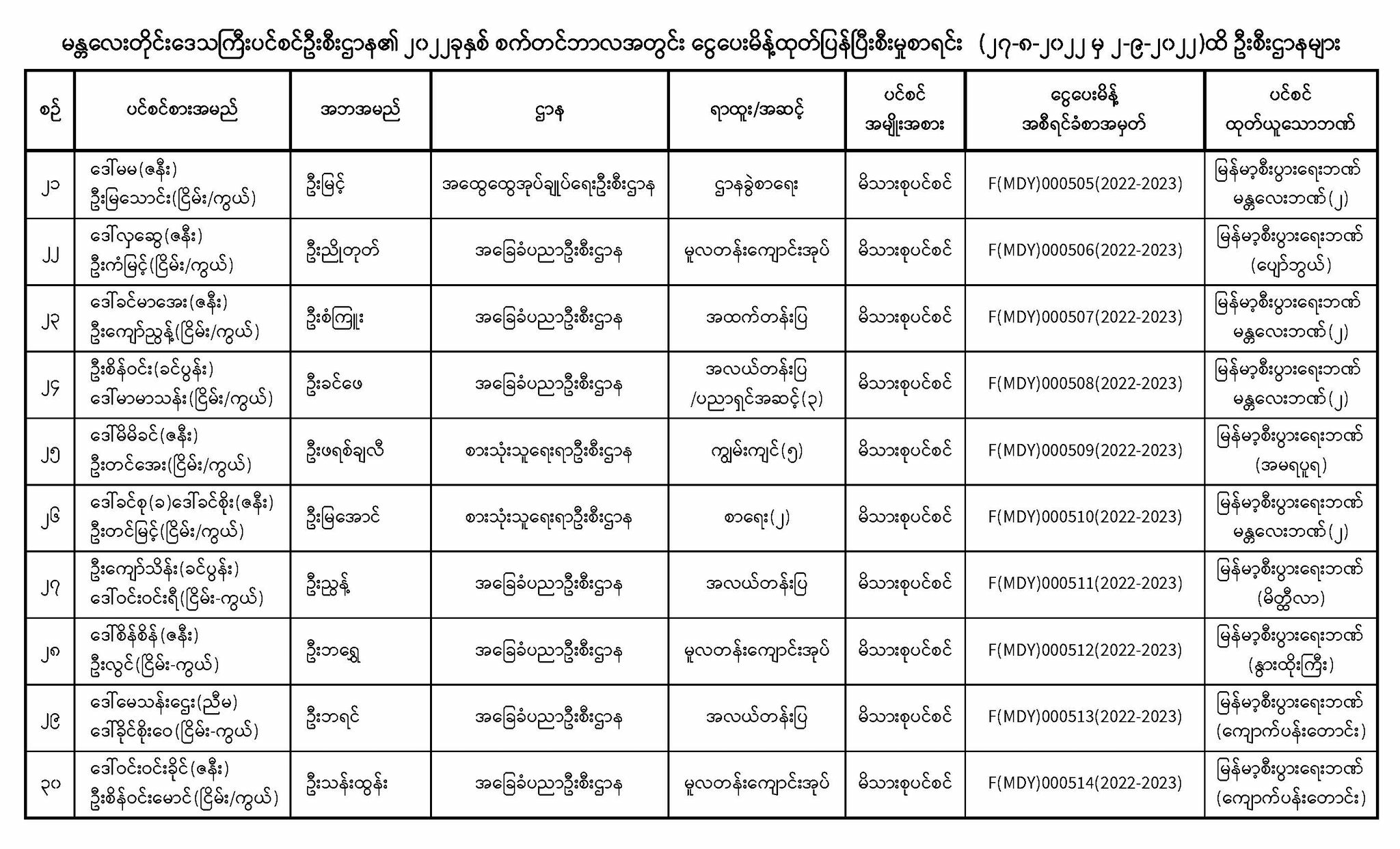 ပင်စင်ဦးစီးဌာန၊မန္တလေးတိုင်းဒေသကြီး၏ငွေပေးမိန့်ထုတ်ပြန်မှုစာရင်း(၂၇.၈.၂၀၂၂ မှ ၂.၉.၂၀၂၂) pension_editor Mon, 09/05/2022 - 11:08