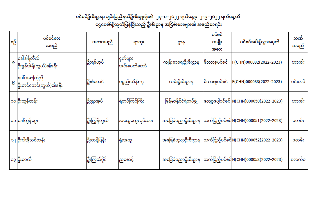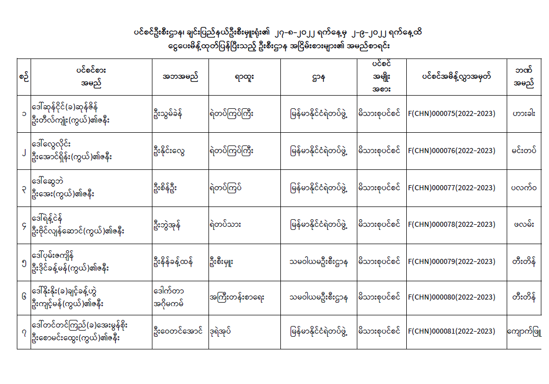 ပင်စင်ဦးစီးဌာန၊ချင်းပြည်နယ်၏ငွေပေးမိန့်ထုတ်ပြန်မှုစာရင်း(၂၇.၈.၂၀၂၂ မှ ၂.၉.၂၀၂၂) pension_editor Tue, 09/06/2022 - 12:16