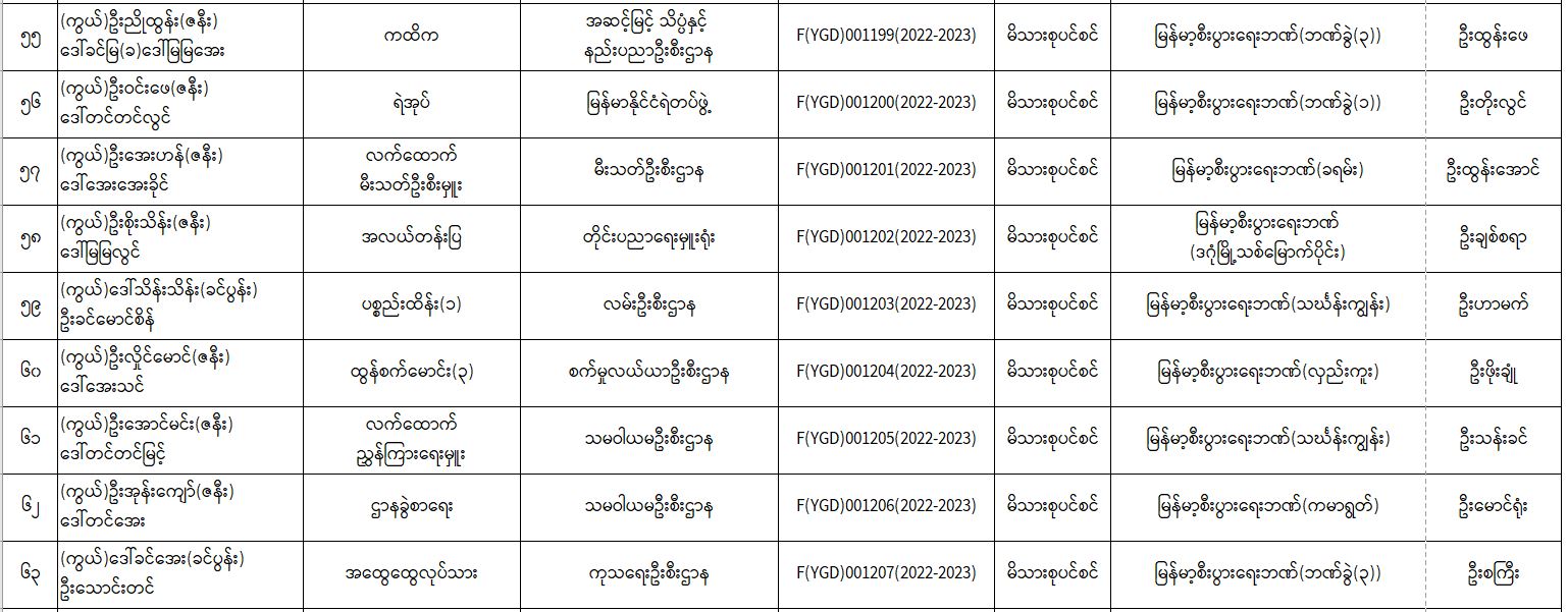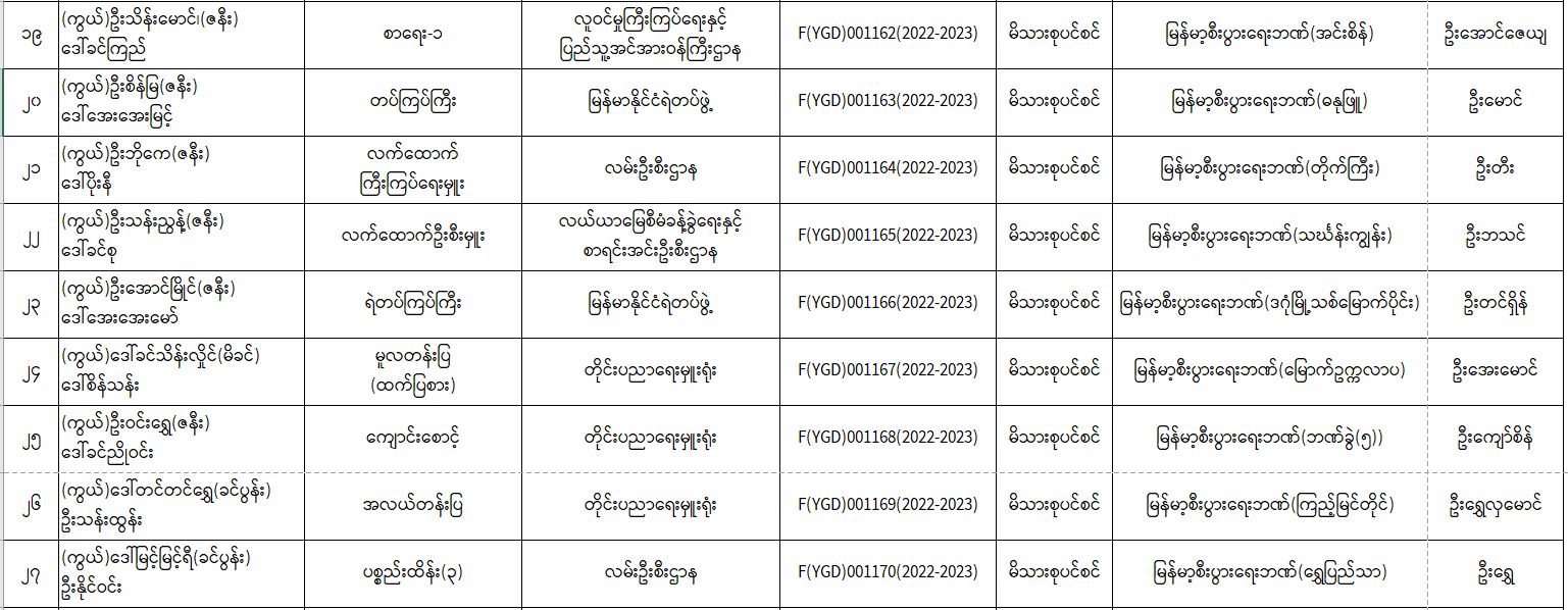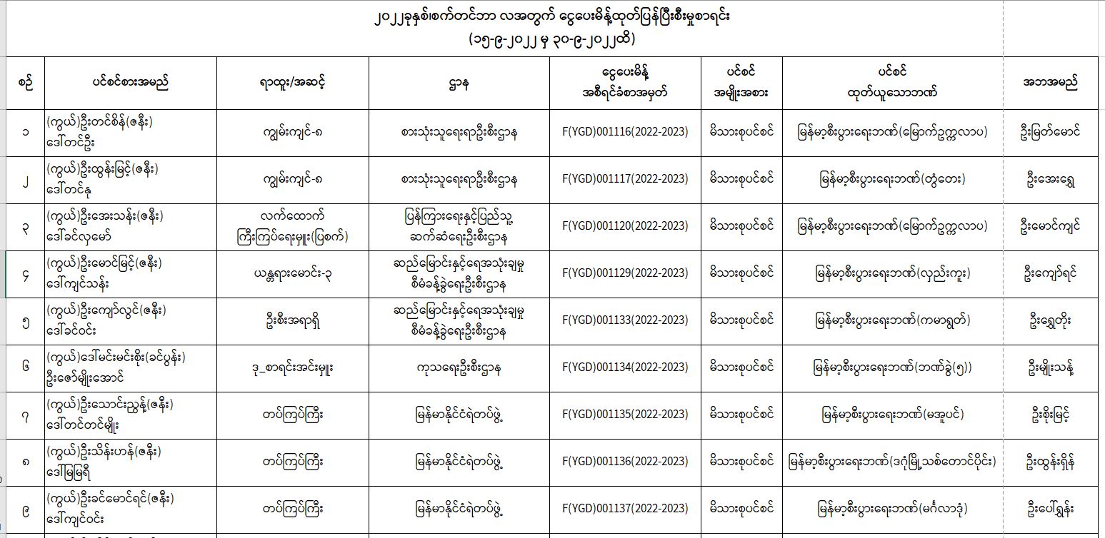 ပင်စင်ဦးစီးဌာန၊ ရန်ကုန်တိုင်းဒေသကြီးဦးစီးမှူးရုံး၏ ငွေပေးမိန့်ထုတ်ပြန်မှုစာရင်း (၁၅-၉-၂၀၂၂ မှ ၃၀-၉-၂၀၂၂) pension_editor Mon, 10/03/2022 - 16:00