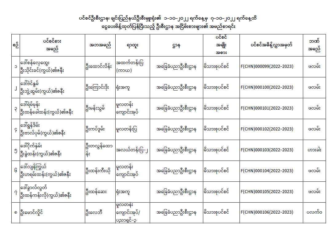 ပင်စင်ဦးစီးဌာန၊ ချင်းပြည်နယ်၏ ငွေပေးမိန့်ထုတ်ပြန်မှုစာရင်း (၁-၁၀-၂၀၂၂ မှ ၇-၁၀-၂၀၂၂) pension_editor Wed, 10/12/2022 - 10:15