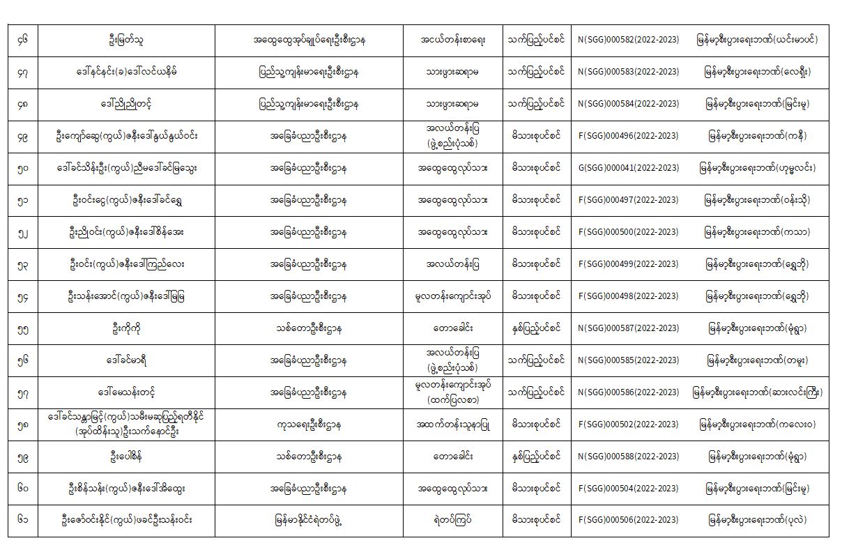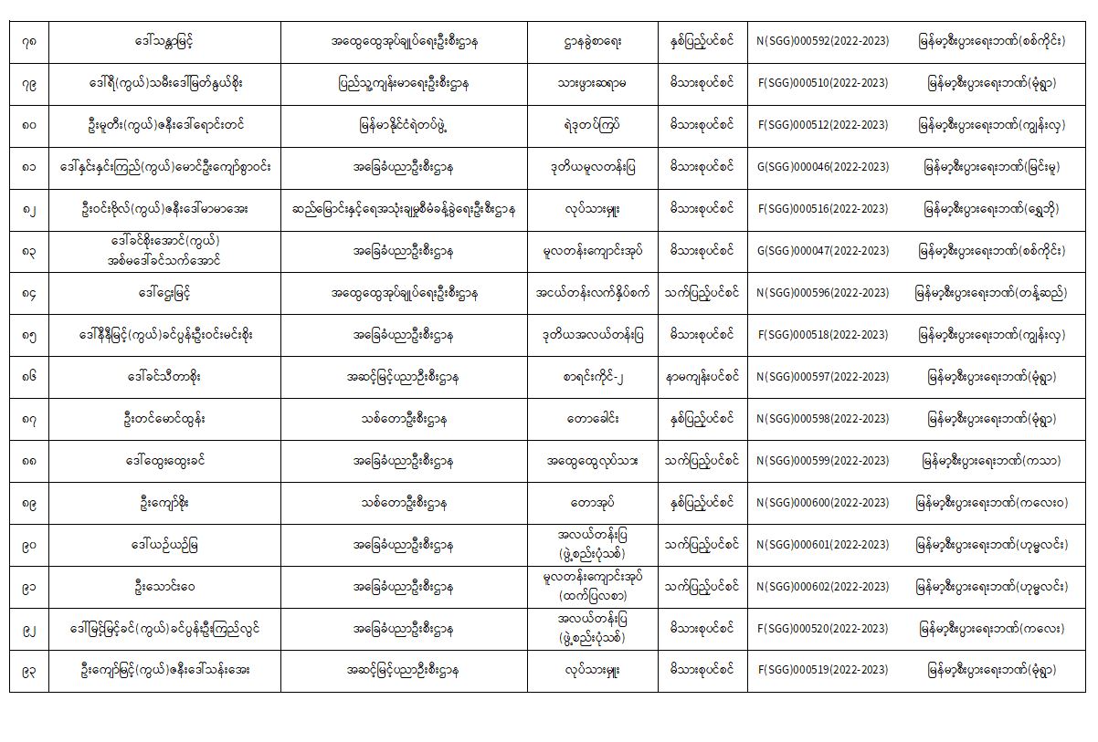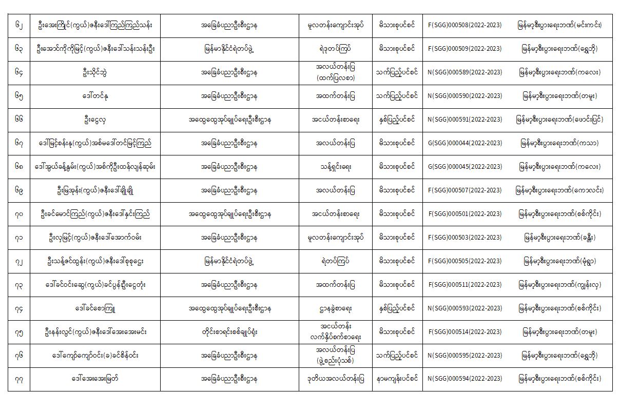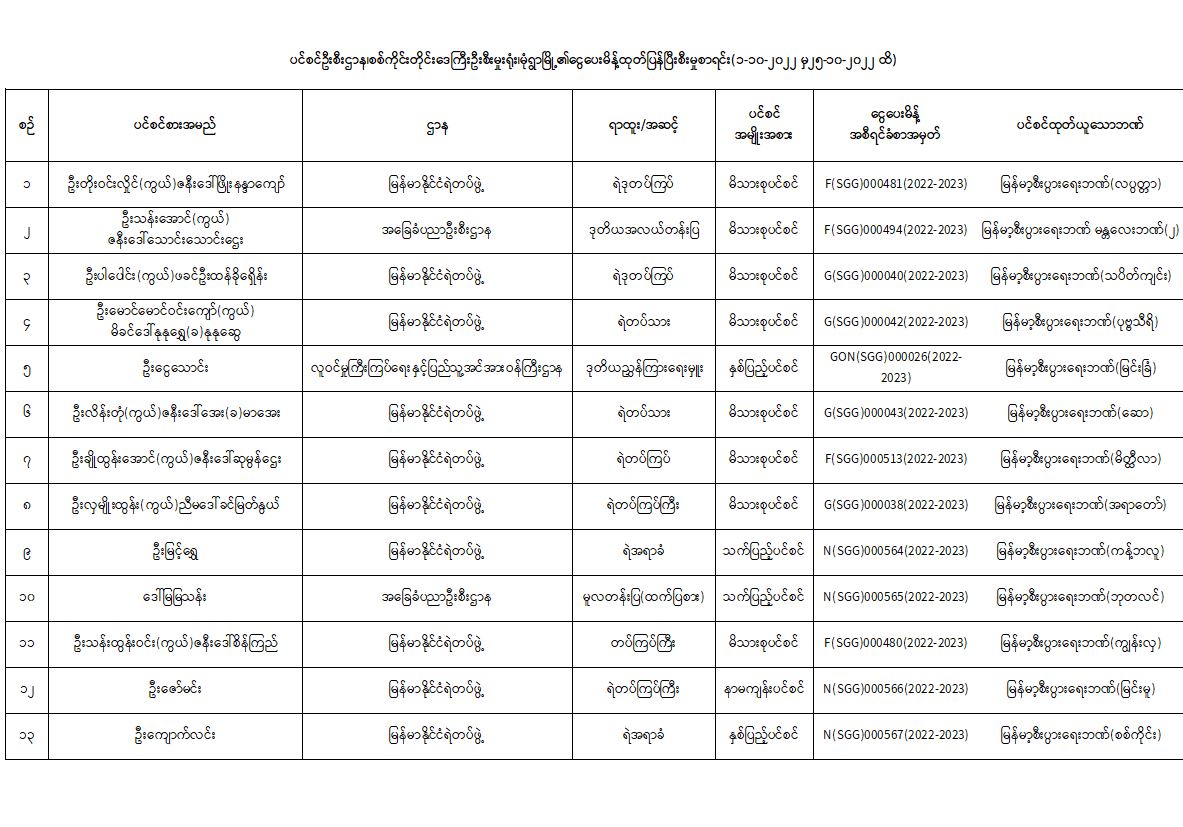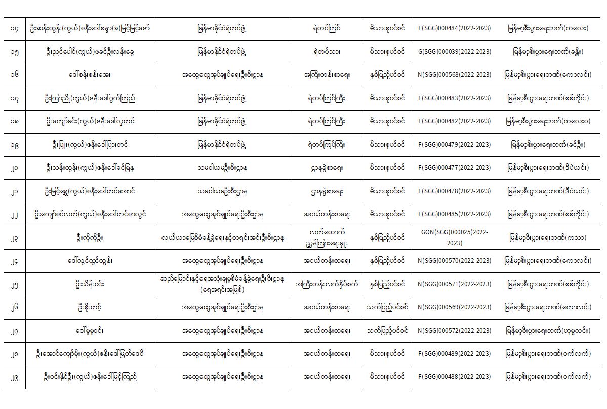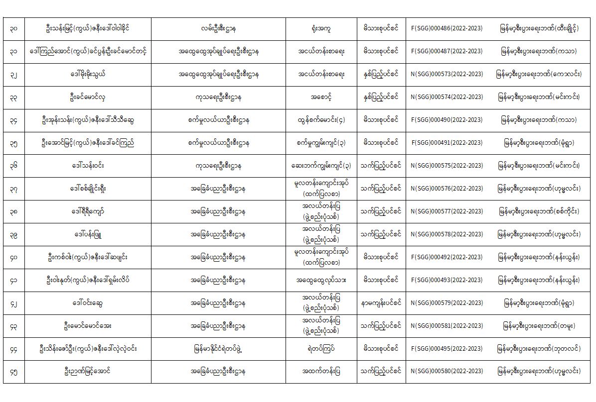 ပင်စင်ဦးစီးဌာန၊ စစ်ကိုင်းတိုင်းဒေသကြီးဦးစီးမှူးရုံး၏ ငွေပေးမိန့်ထုတ်ပြန်မှုစာရင်း (၁-၁၀-၂၀၂၂ မှ ၂၅-၁၀-၂၀၂၂)